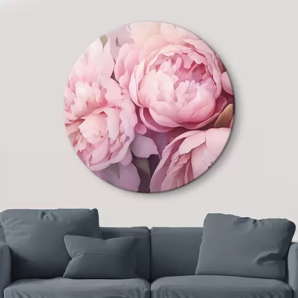 Runde Gemälde Rosa Pfingstrosen r44908