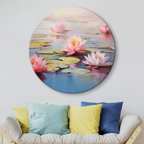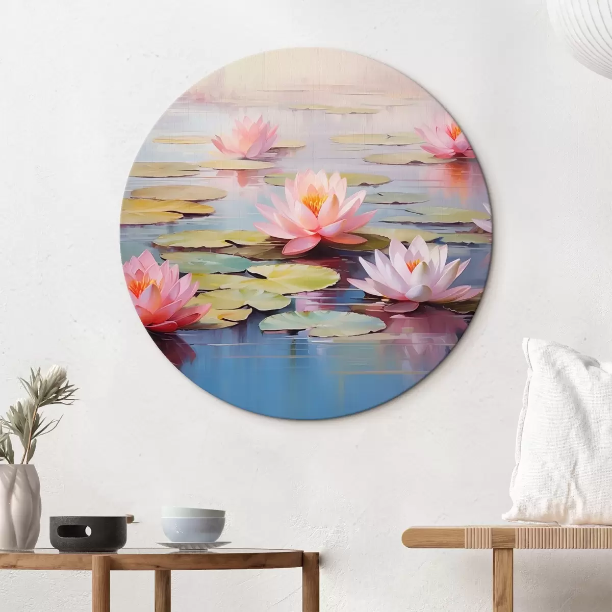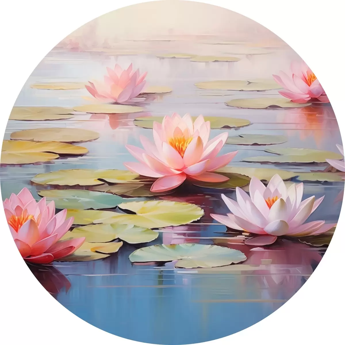Runde Gemälde Lotosblumen auf dem Wasser r44909