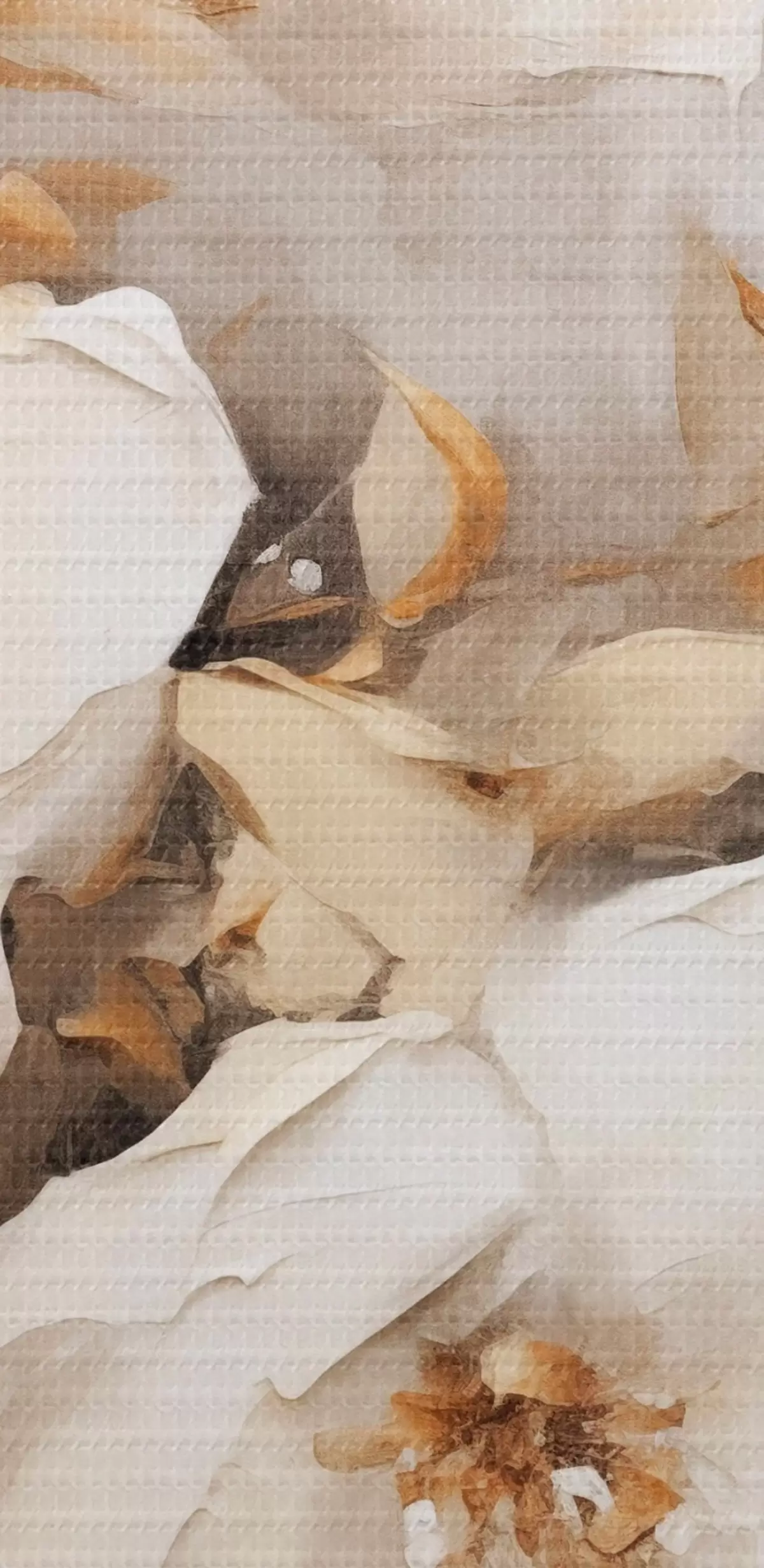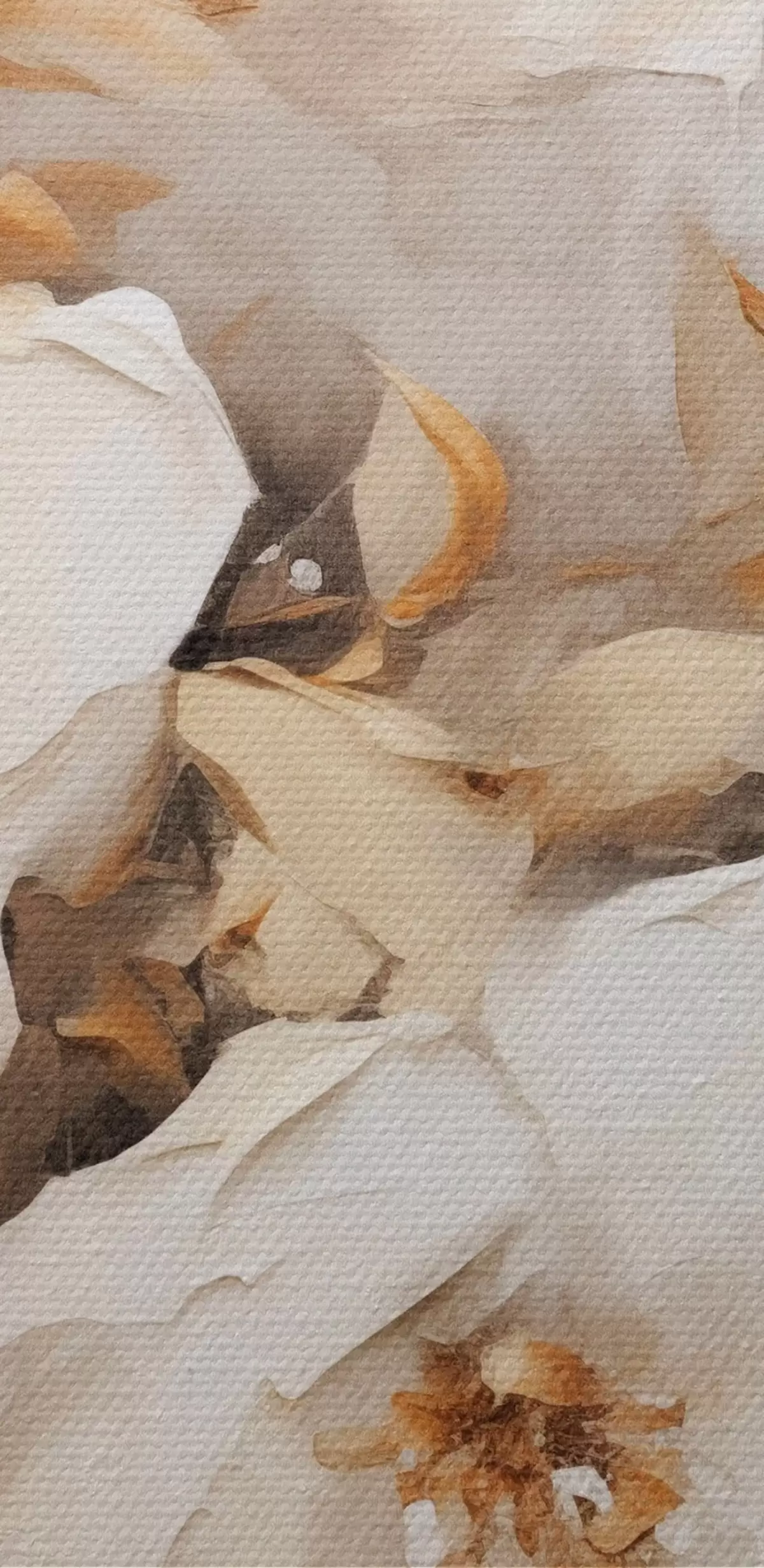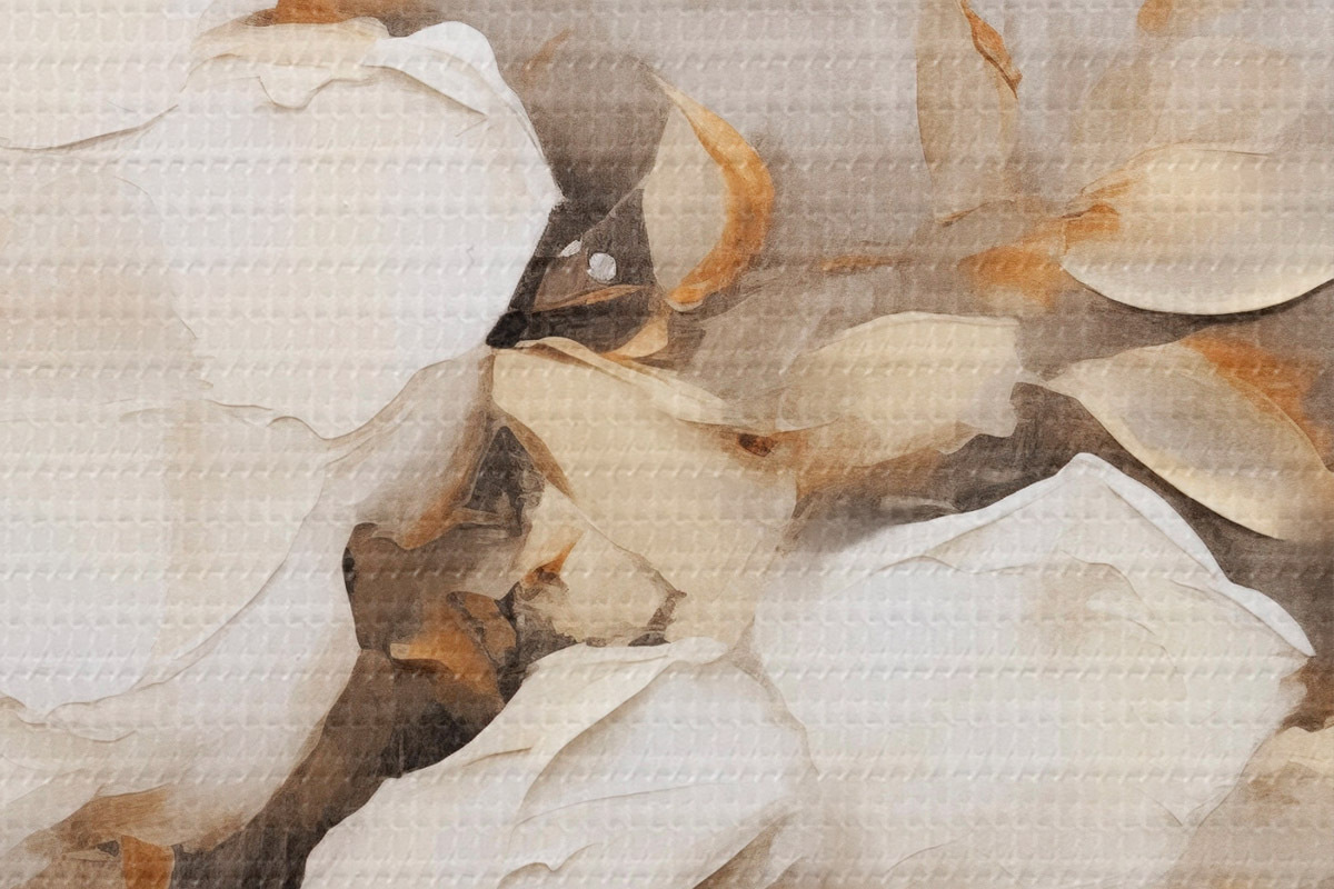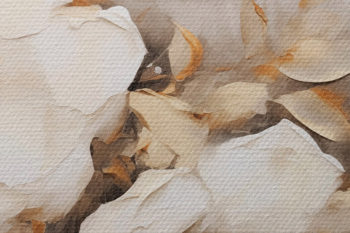 Bild Weiße Blumen mit braunen Blättern in einem beigen Hintergrund, Ölgemälde Nachahmung, Blumenarrangement, botanische Kunst Nr r44922