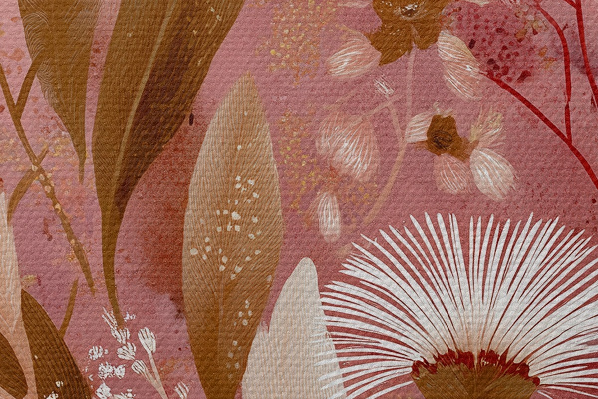 Bild Boho-Stil weiße Blumen auf dem roten Hintergrund, detaillierte Zeichnung Nr r44979