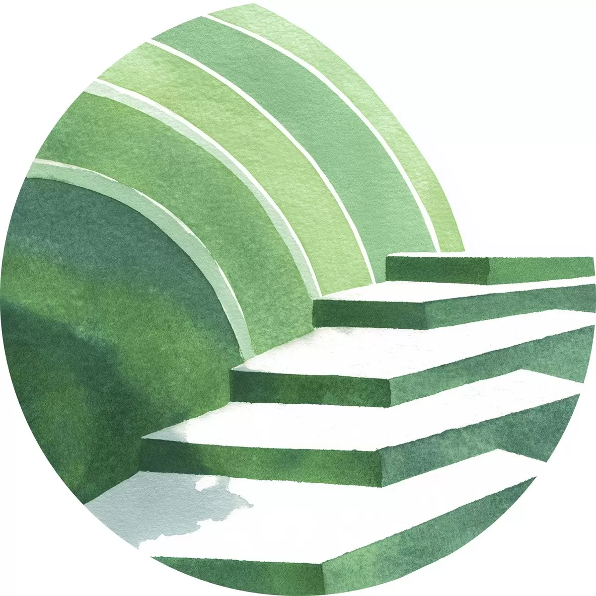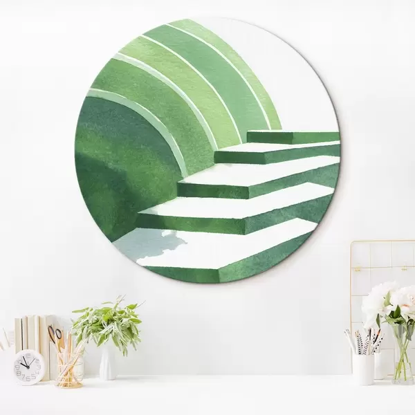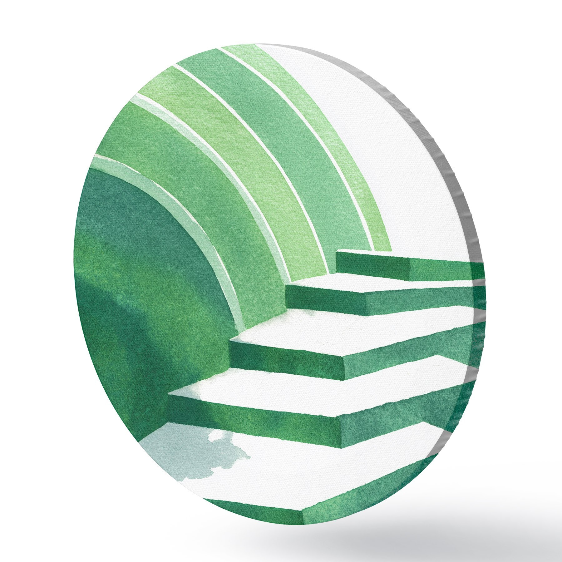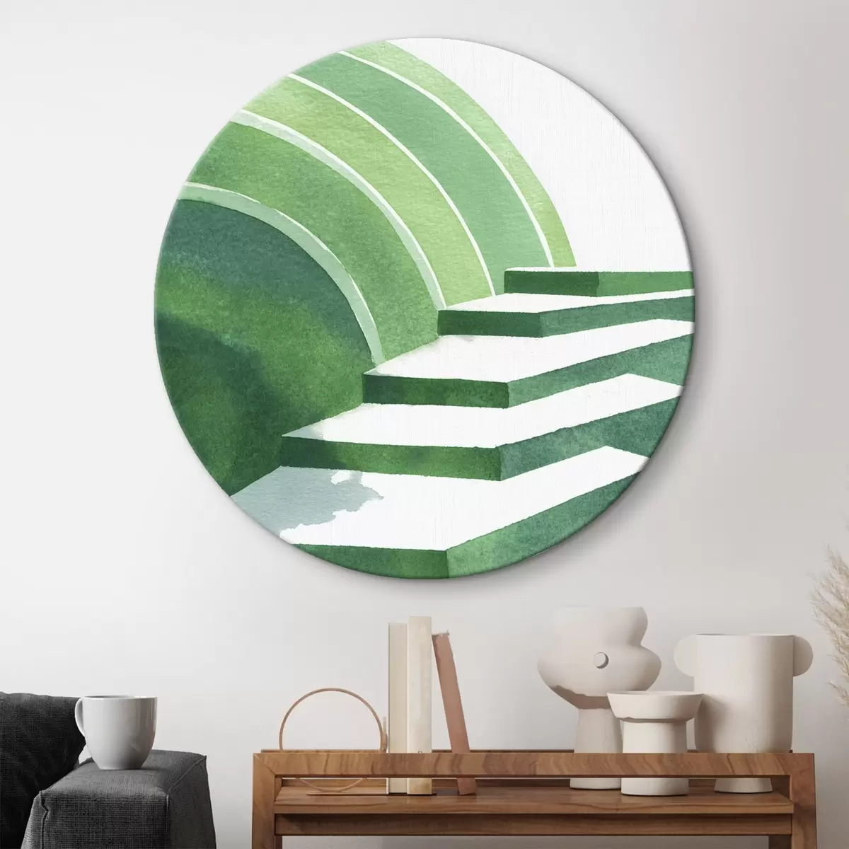 Runde Gemälde Geometrische Abstraktion in grünen Farben, Aquarellstil r44981