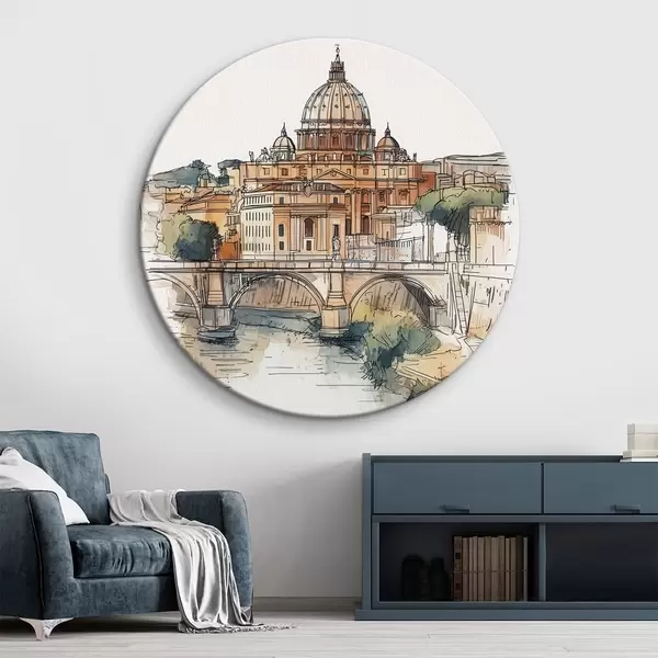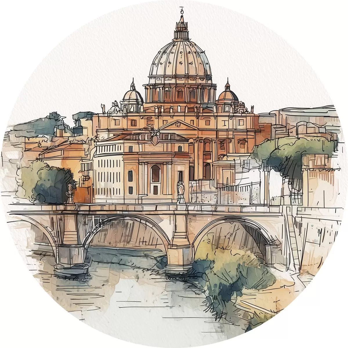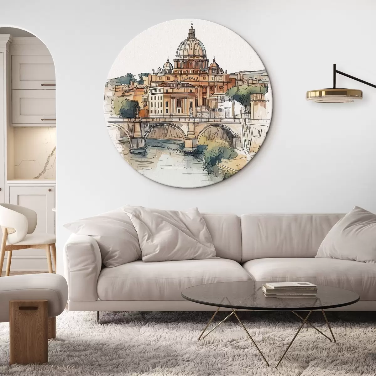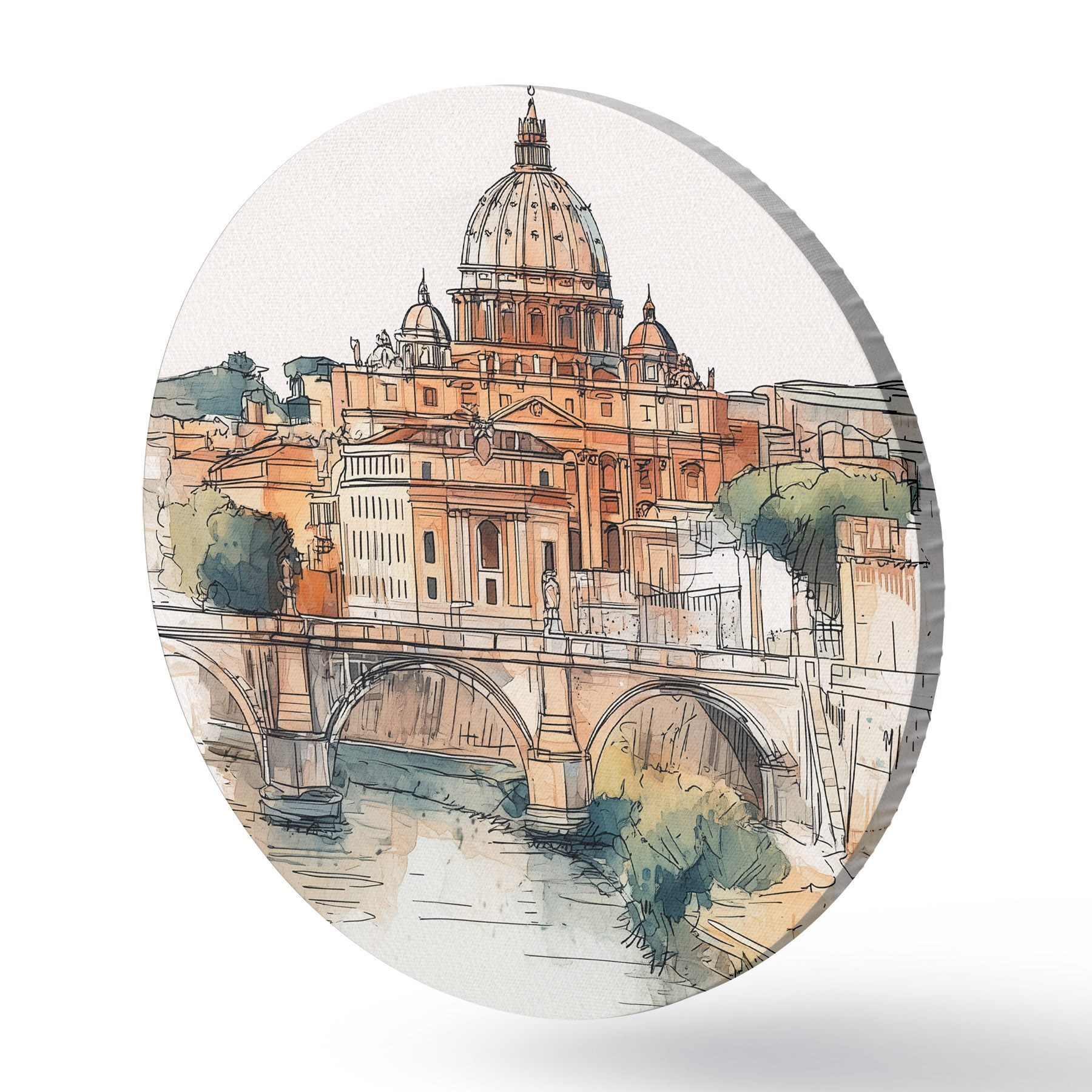 Runde Gemälde Aquarell Rom Stadt, Skizze Zeichnung, Architektur r44983