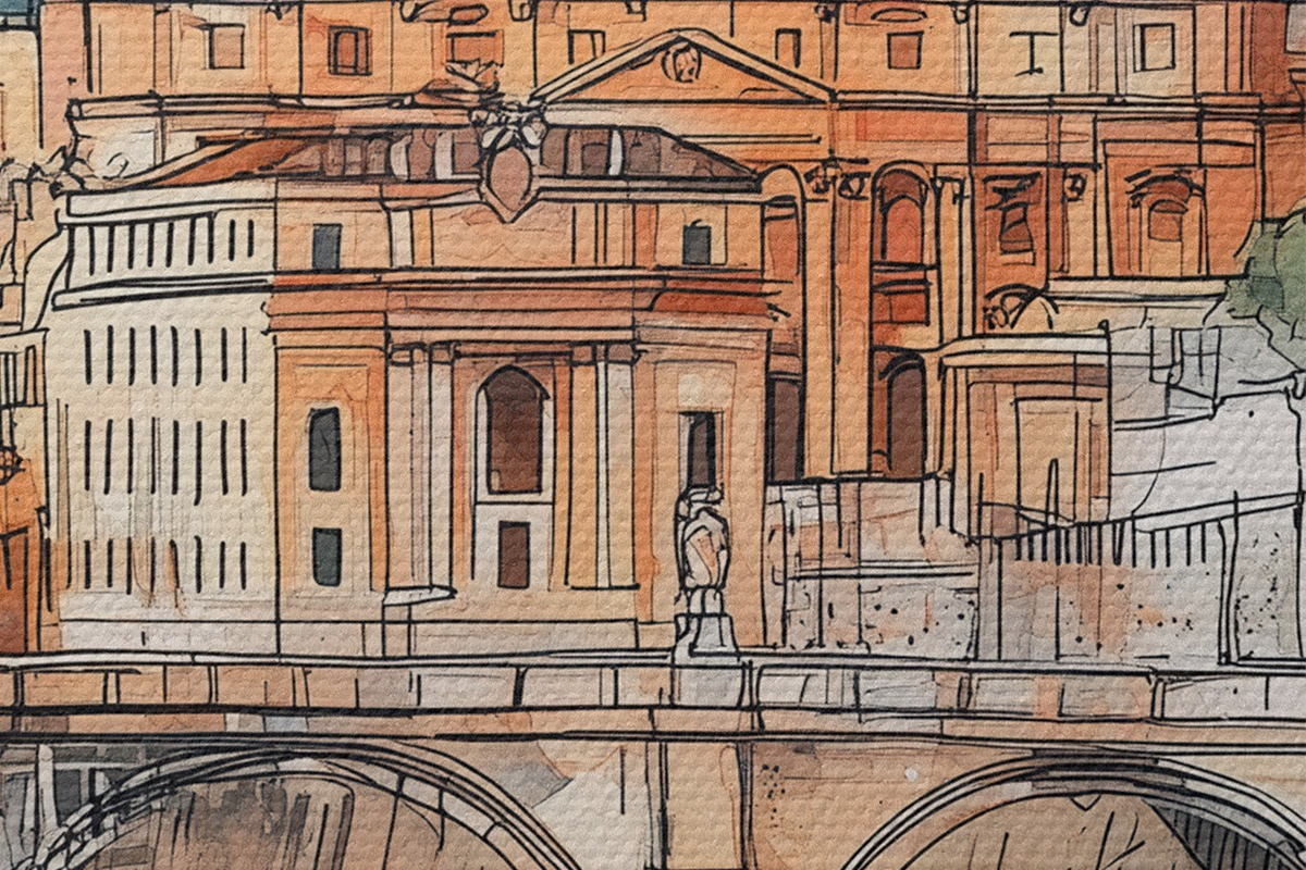 Bild Aquarell Rom Stadt, Skizze Zeichnung, Architektur Nr r44983