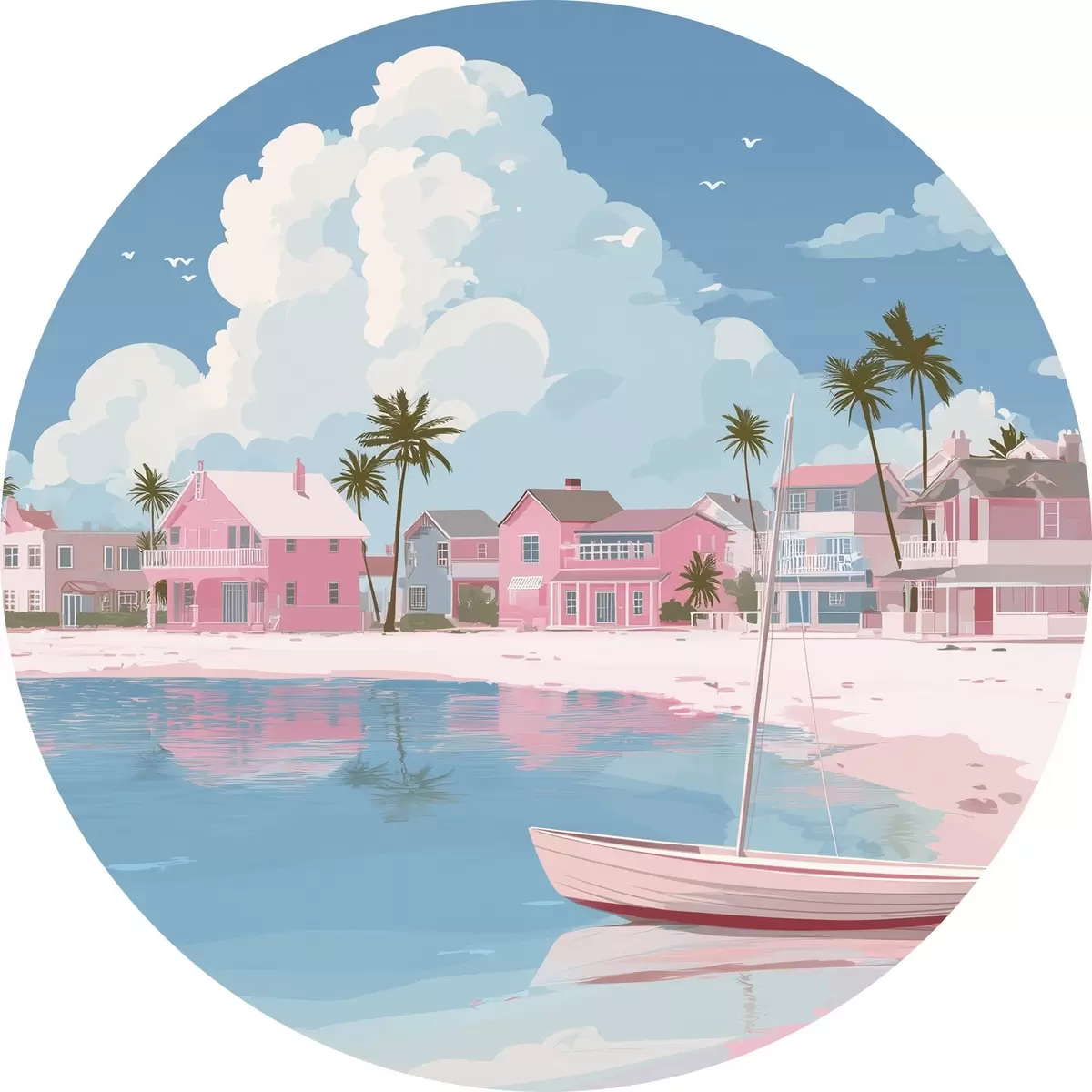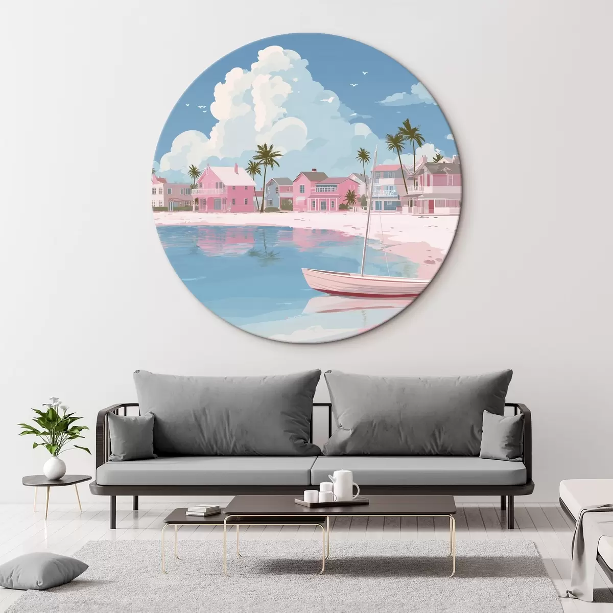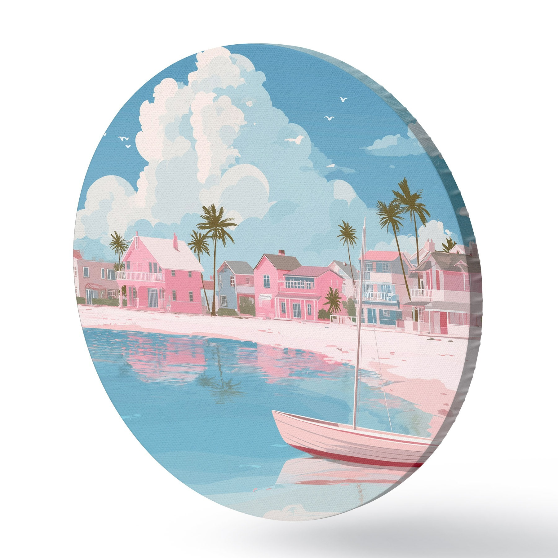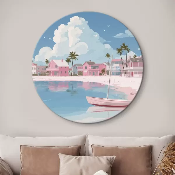 Runde Gemälde Bunter rosa Sommerstrand r44985
