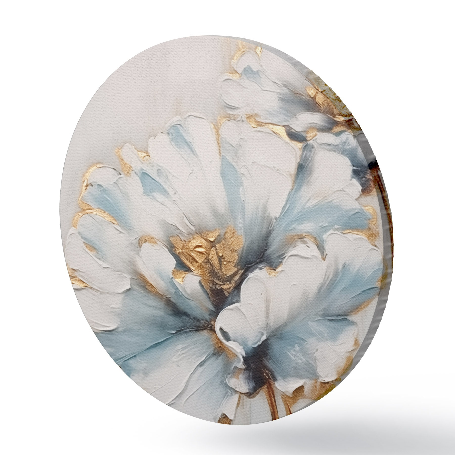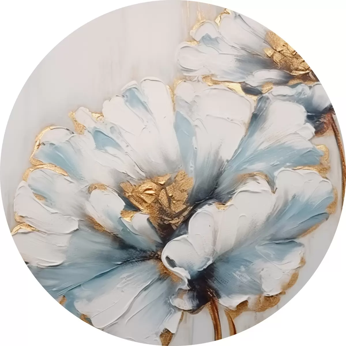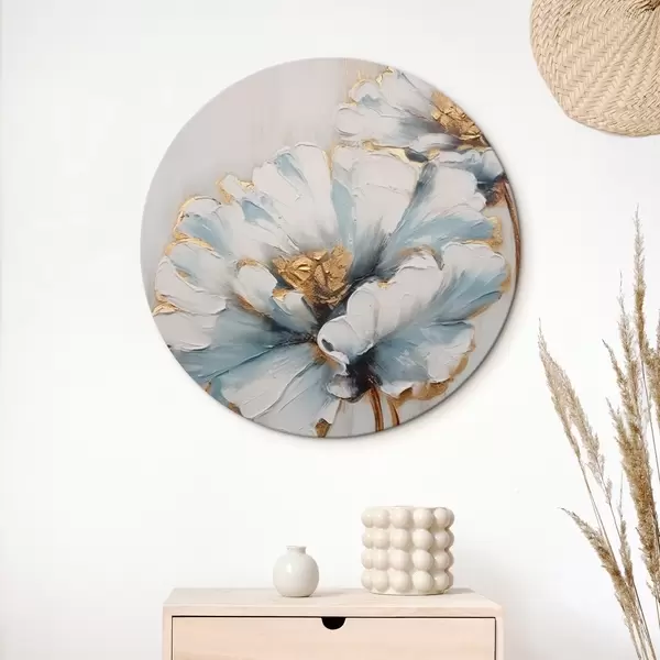 Runde Gemälde Blaue und weiße Blumen r44989