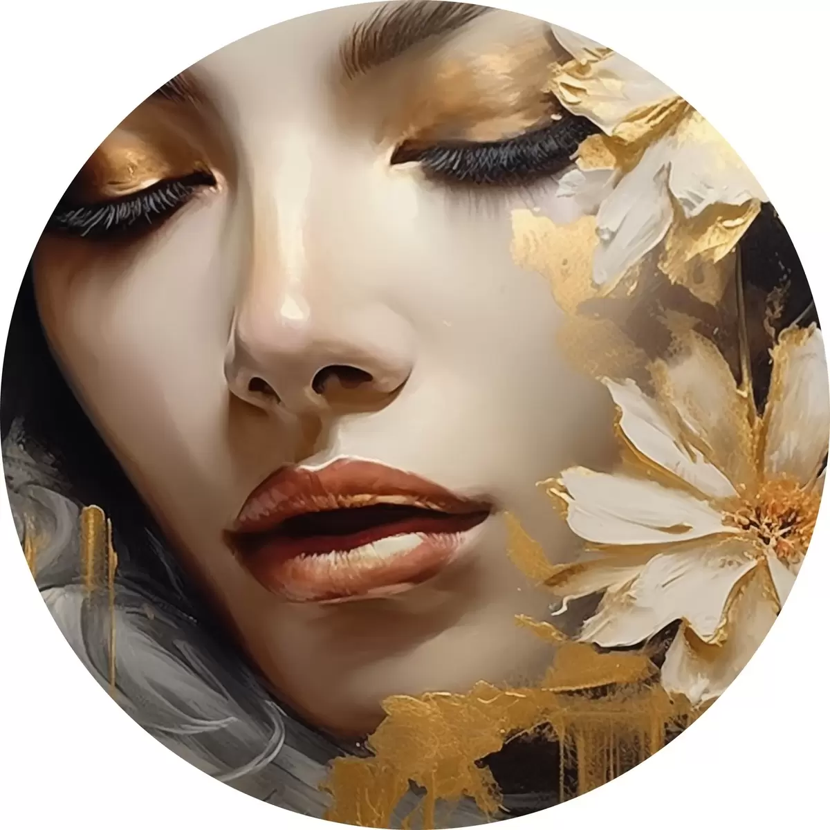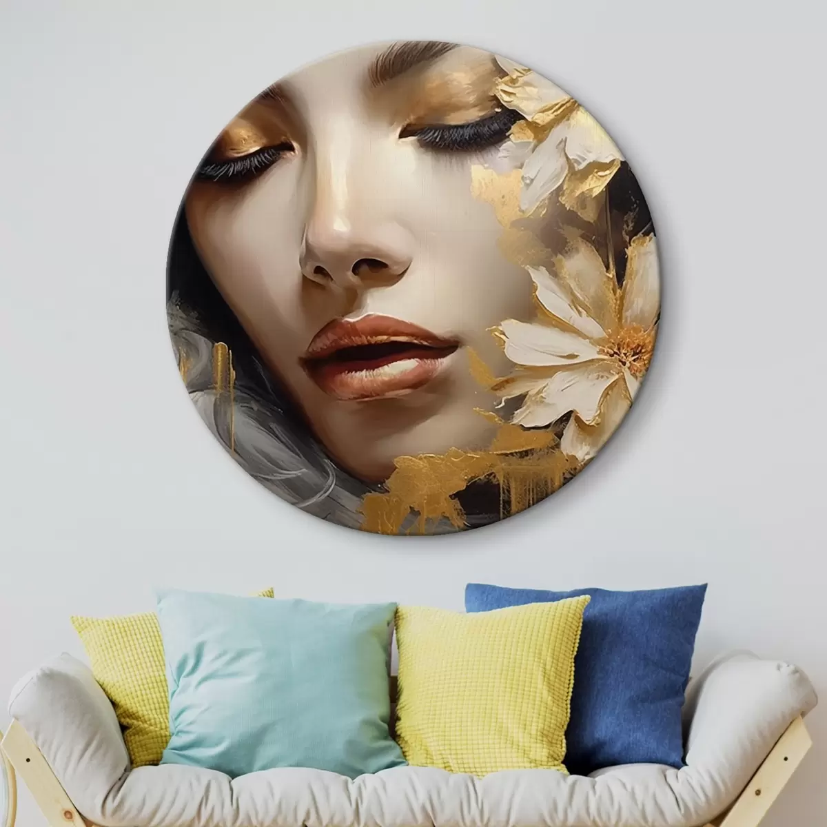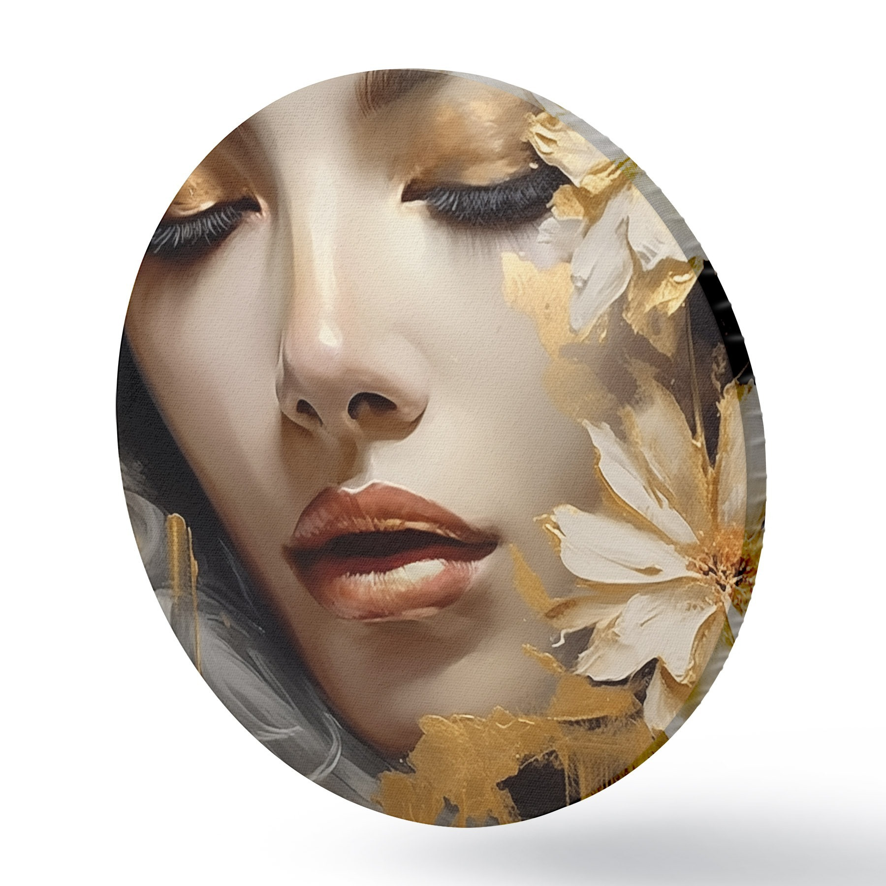 Runde Gemälde Frauenporträt mit Blumen r45002
