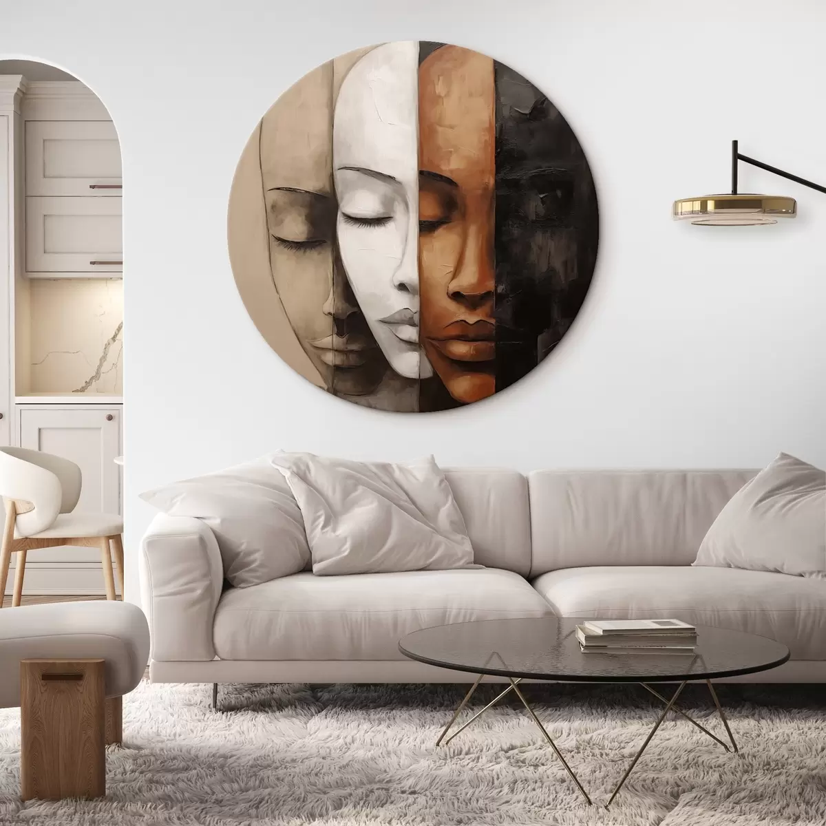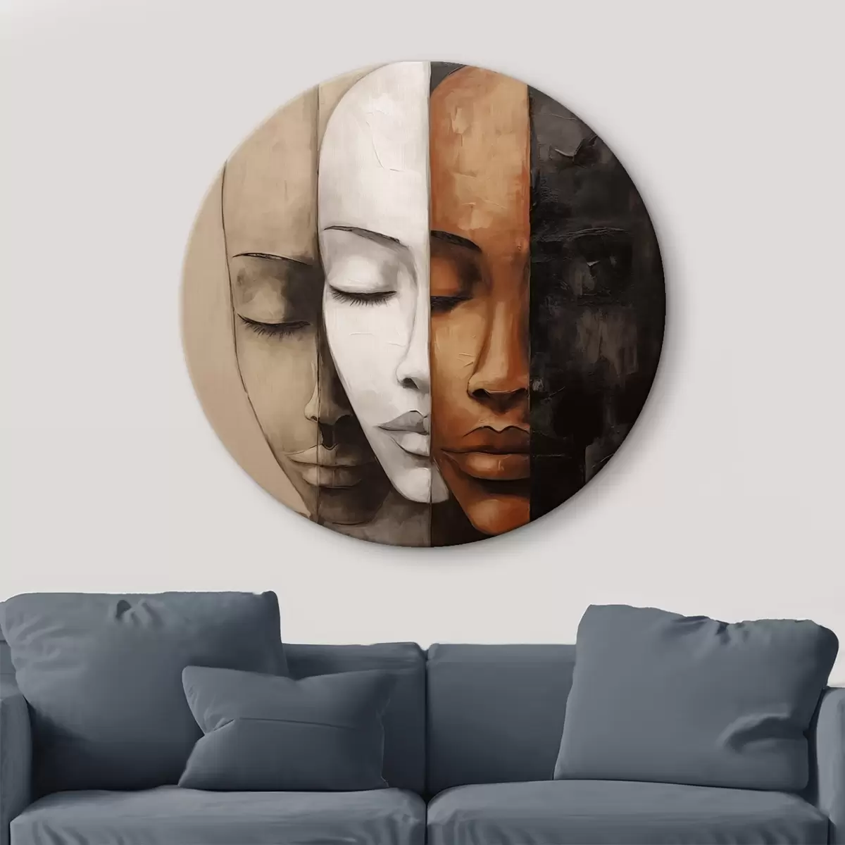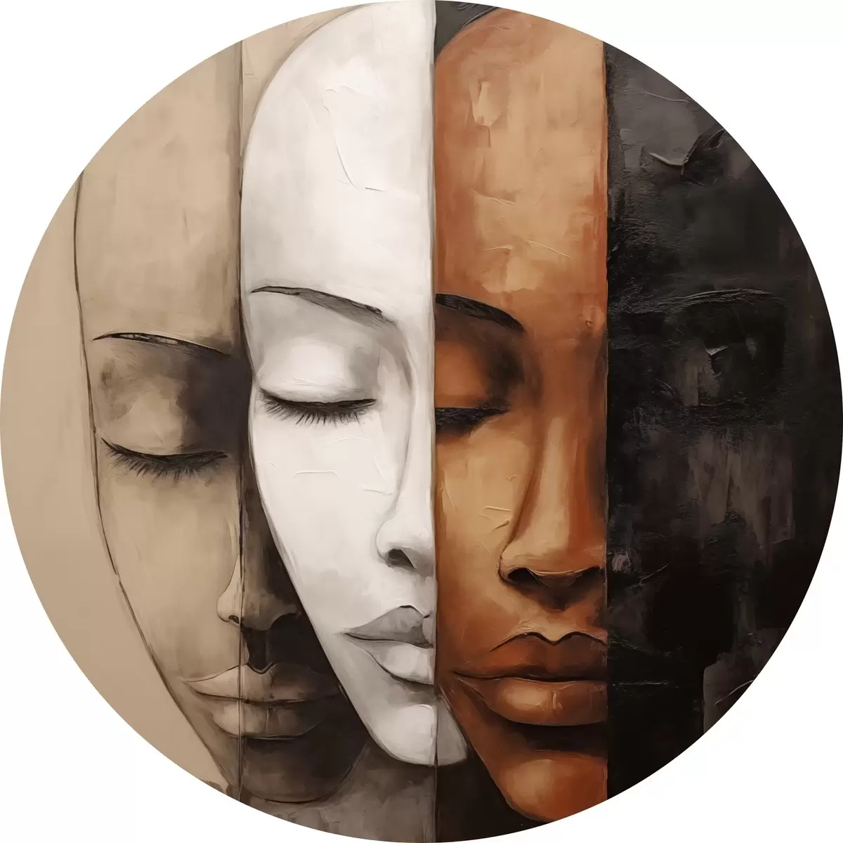Runde Gemälde Porträt im abstrakten Stil mit Gesichtern r45003