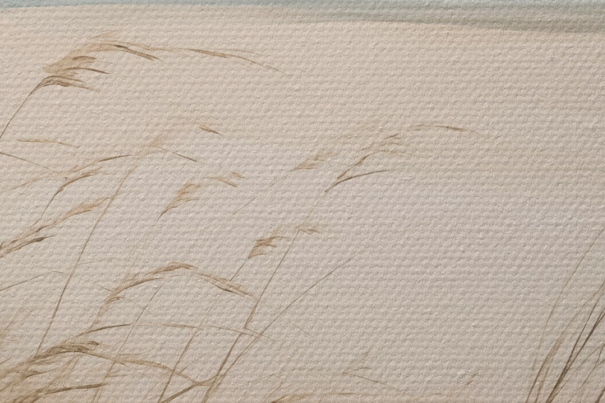 Das feine Fadengeflecht auf dieser Leinwand ähnelt der Oberfläche von professionellen Künstlerleinwänden.