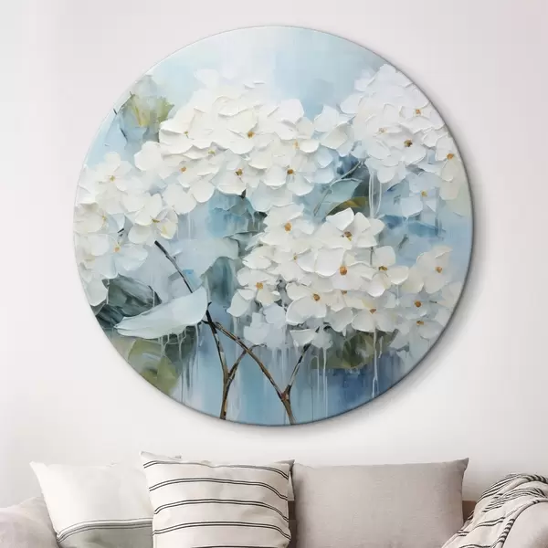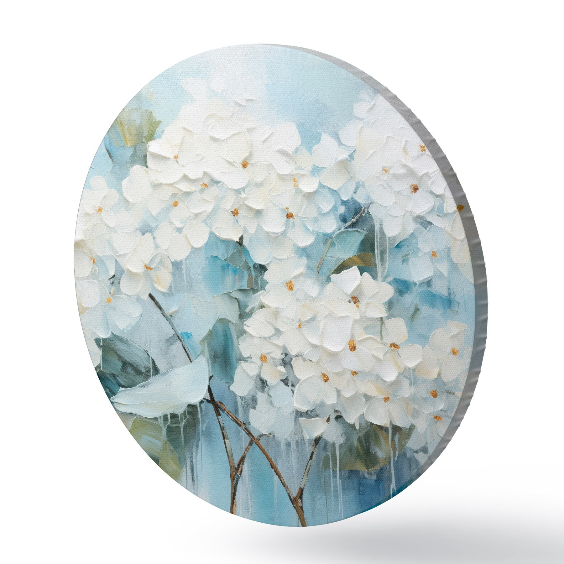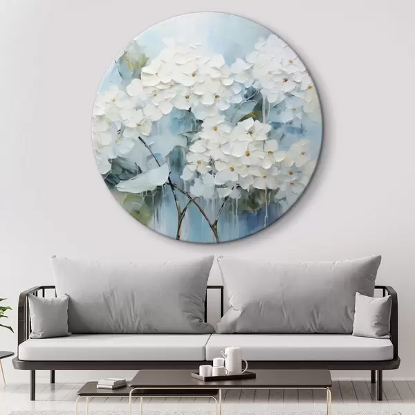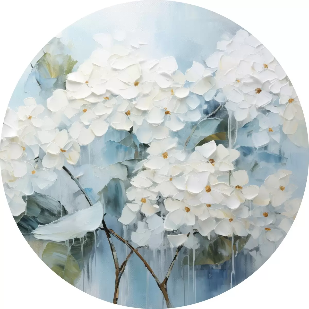 Runde Gemälde Blühende weiße Hortensien im Stil der Ölmalerei r45051