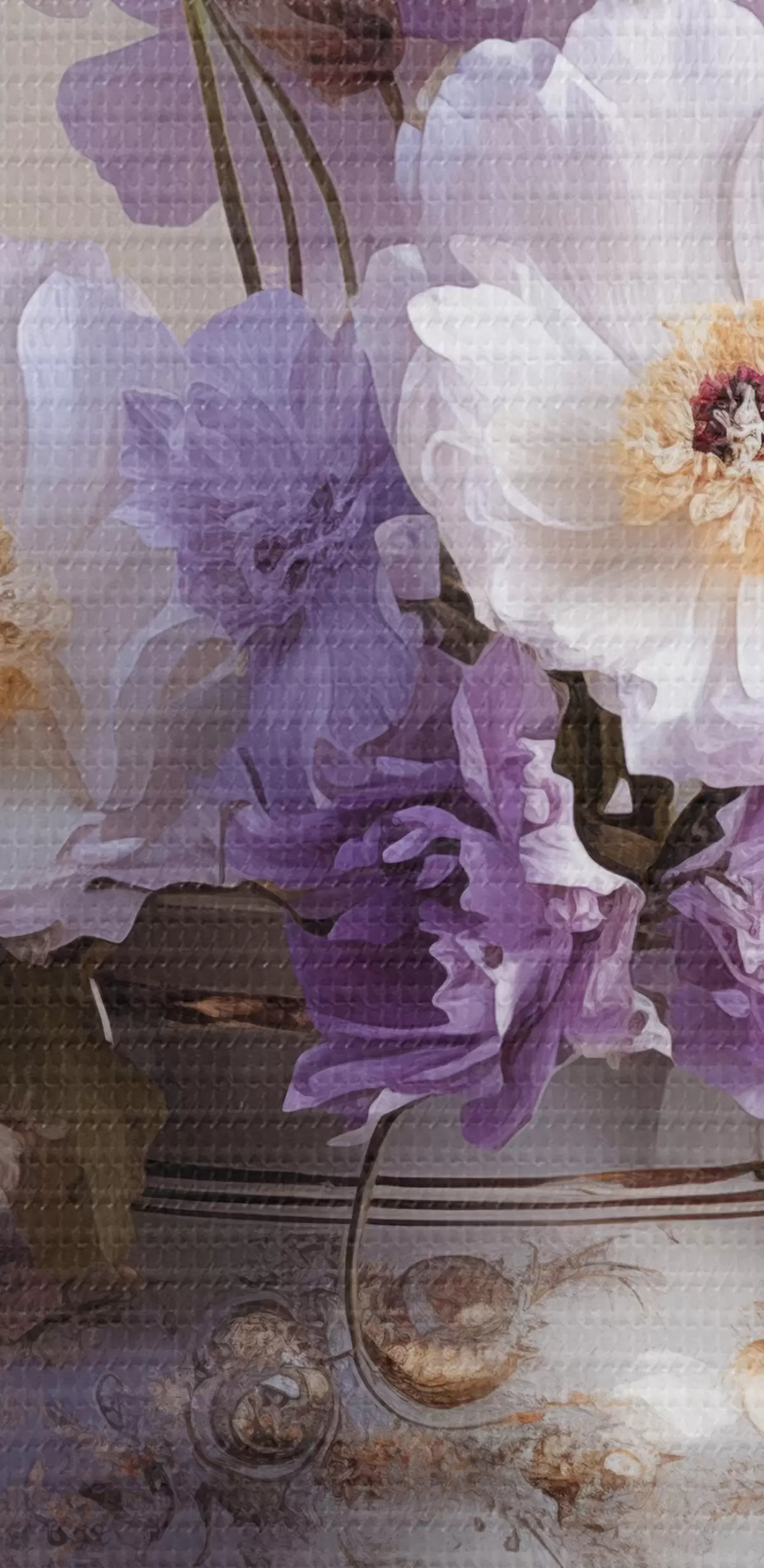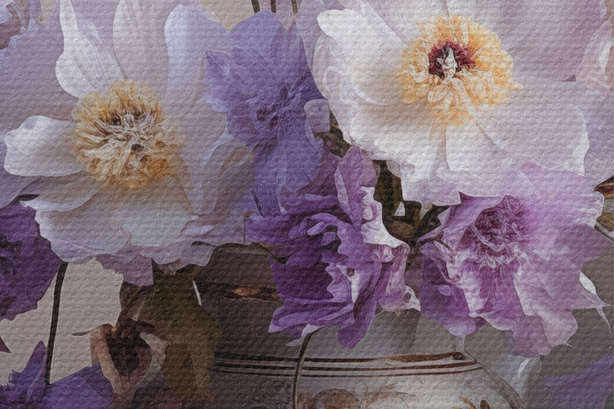 Bild Blumenstillleben: weiße und violette Blumen im künstlerischen Stil Nr r45058