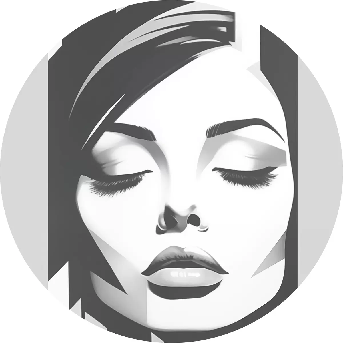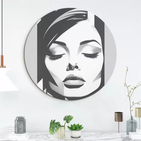 Runde Gemälde Schwarzes und weißes Gesicht mit geschlossenen Augen r45075