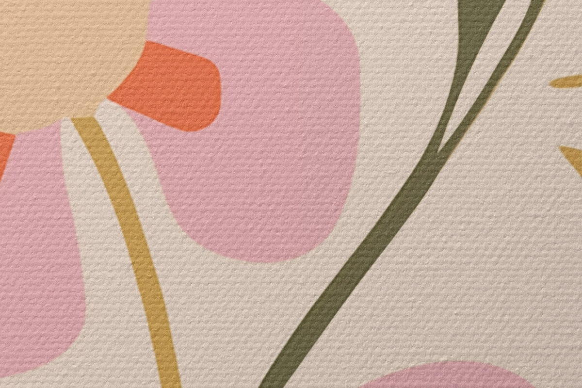 Bild Stilisierte rosa und orange Blumen mit grünen Blättern Nr r45140