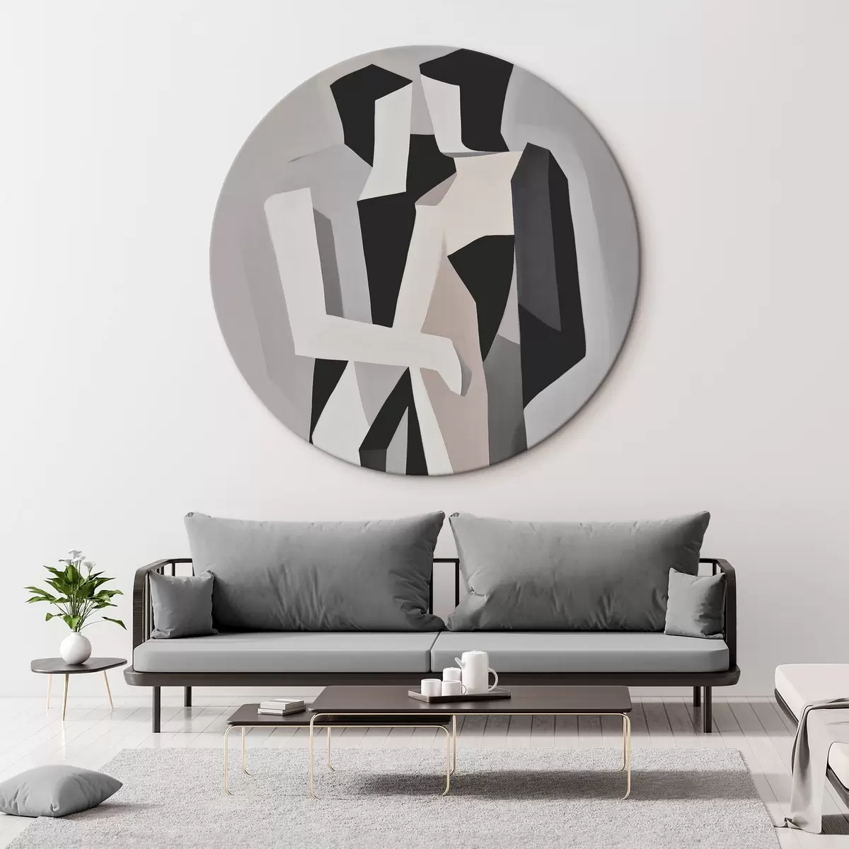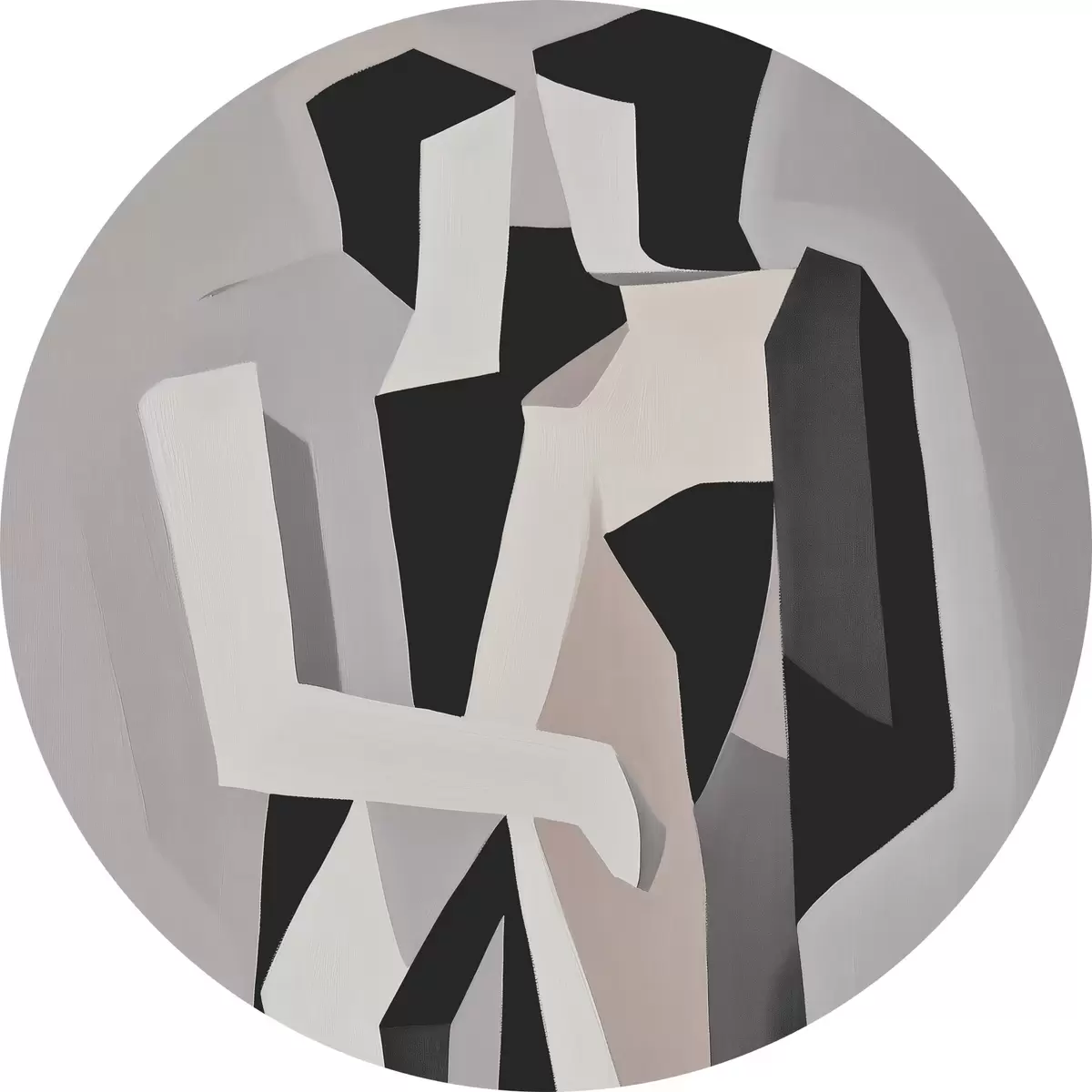 Runde Gemälde Abstrakte Figuren in Monochrom r45155