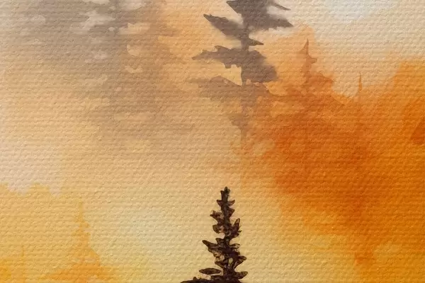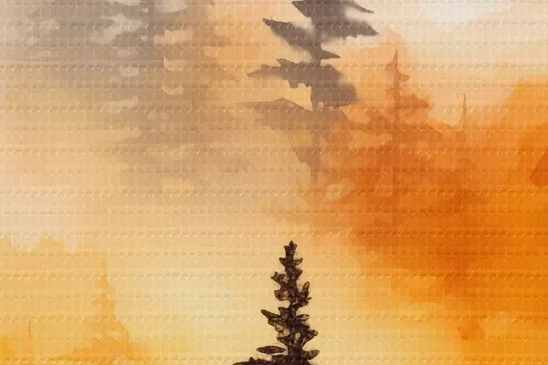 Bild Eine Landschaft Aquarell Malerei Nachahmung eines Waldes mit hohen Kiefern und Berge im Hintergrund Nr r45170