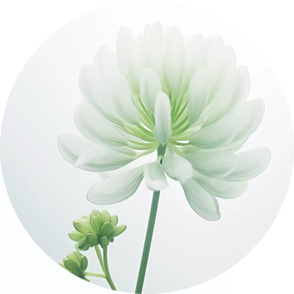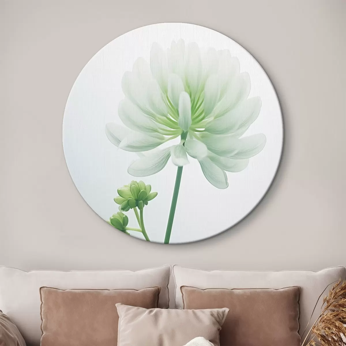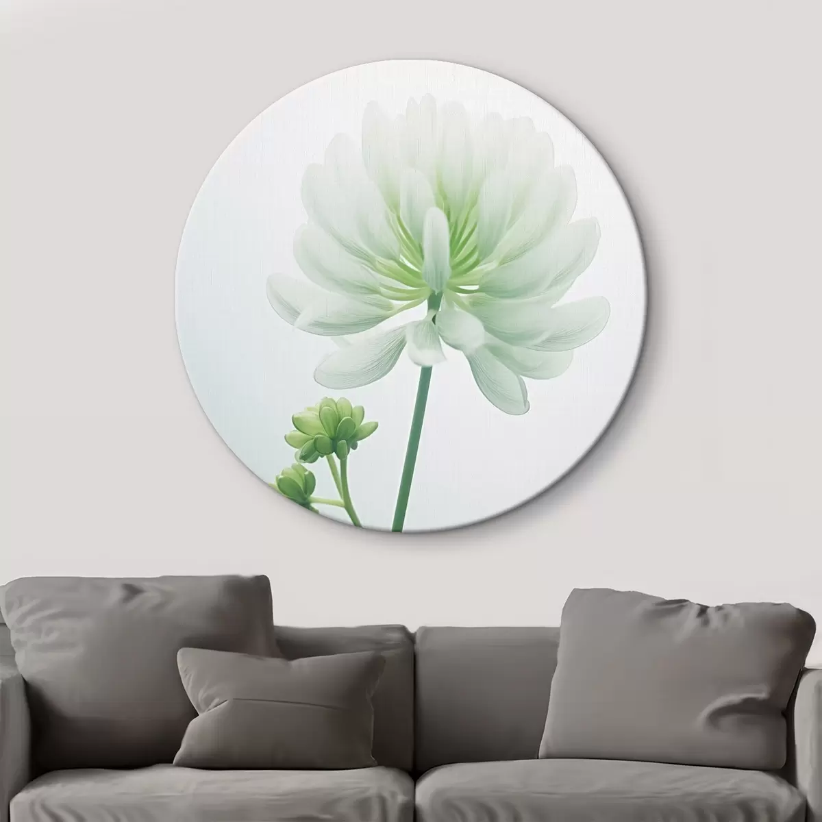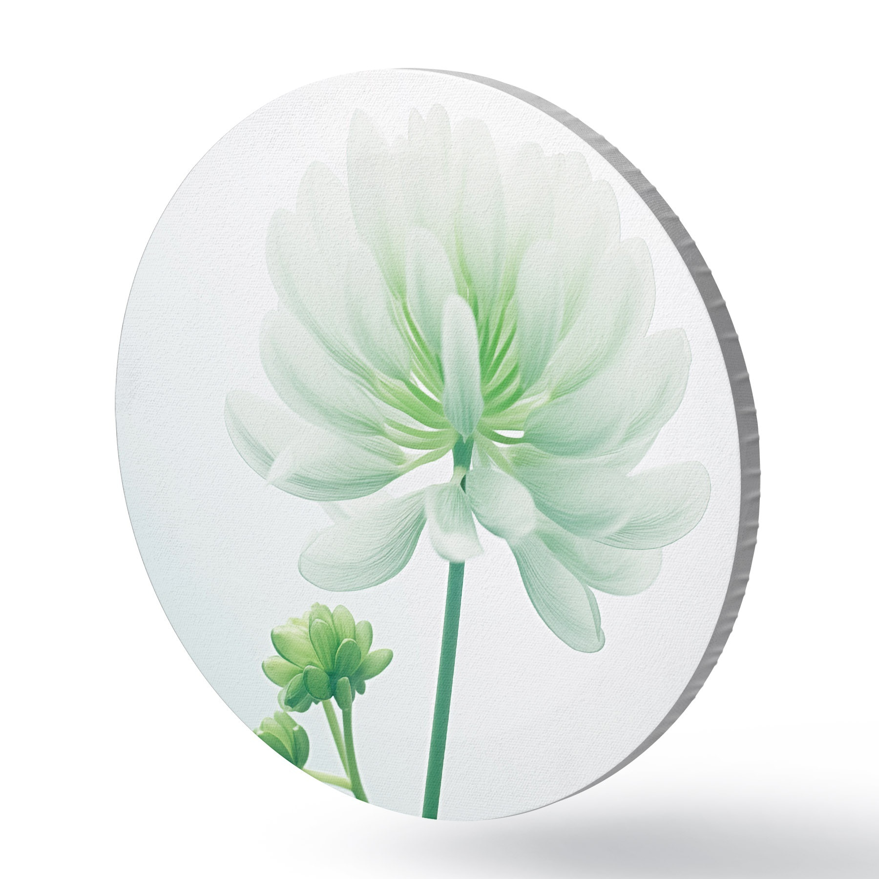 Runde Gemälde Weißer Klee Blume mit grünen Stiel und Blätter, weiche Beleuchtung, sauberen Hintergrund, minimalistische Komposition, botanische r45171