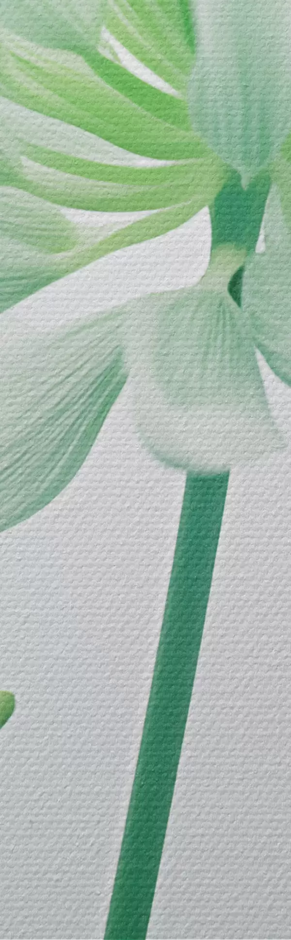 Drei Materialtypen stehen zur Verfügung: Economic Canvas - ein dichtes und haltbares Material für den Digitaldruck, identisch mit Malerleinwand, wasserfeste Oberfläche, realistische Wiedergabe von Details, mittelkörniges Material. Premium Canvas - die Textur ähnelt der einer Malerleinwand (verwobene kleine Fäden). Weiche, detaillierte Wiedergabe des Bildes auf einer matten Oberfläche. Eco-Premium - hochwertiges Gewebe aus 100% Baumwolle. Dank der natürlichen Baumwollfasern ist das Material langlebig und verschleißfest. Hervorragende Farbwiedergabe und Detailtreue.