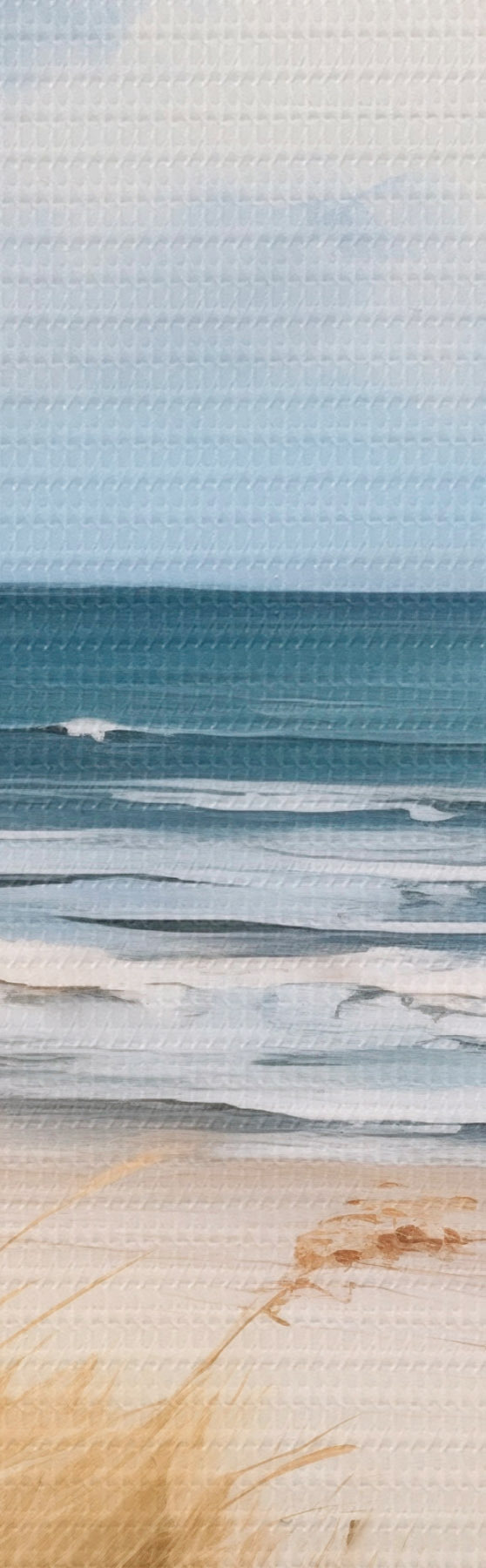 Runde Gemälde Ein Sandstrand mit hohem Gras im Vordergrund, das Meer mit Wellen und ein bewölkter Himmel im Hintergrund r45174