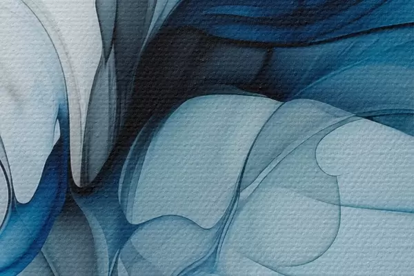 Bild Abstrakte Komposition mit fließenden Linien und durchscheinenden Blütenblättern in blauen, weißen und beigen Farbtönen, Alkoholtintenimitation Nr r45178