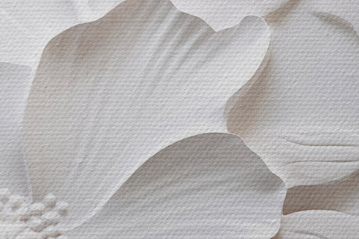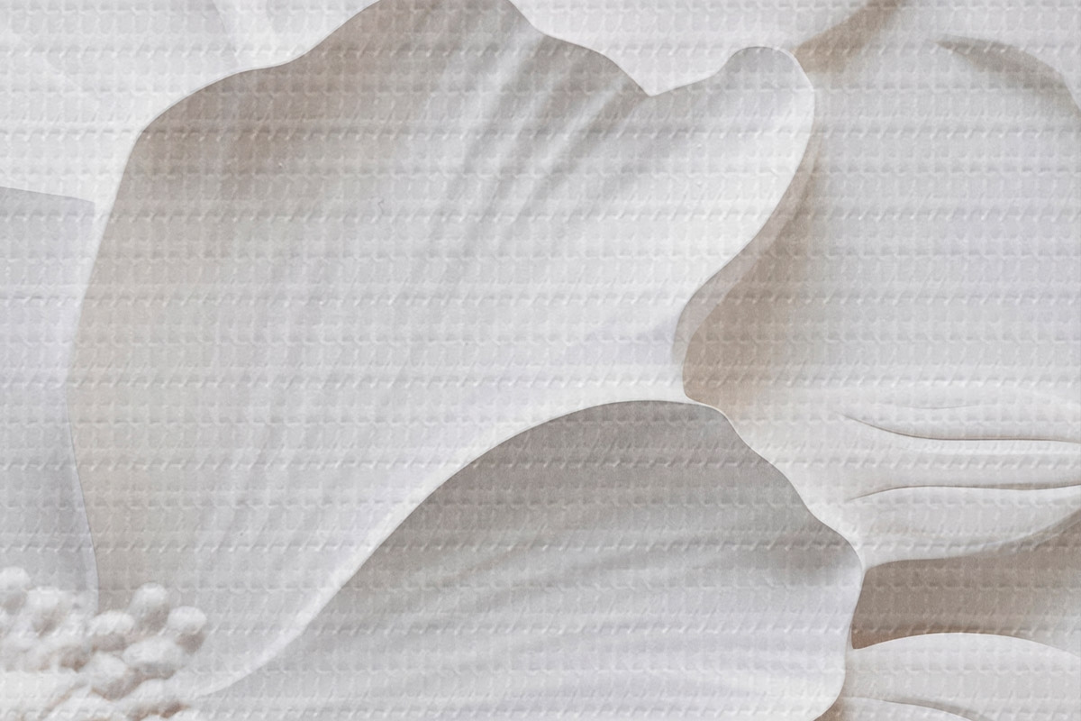 Bild Dekorative minimalistische weiße Blumen mit Blättern, Relief-Imitation, weißer Hintergrund Nr r45180