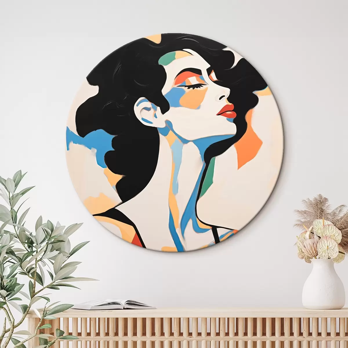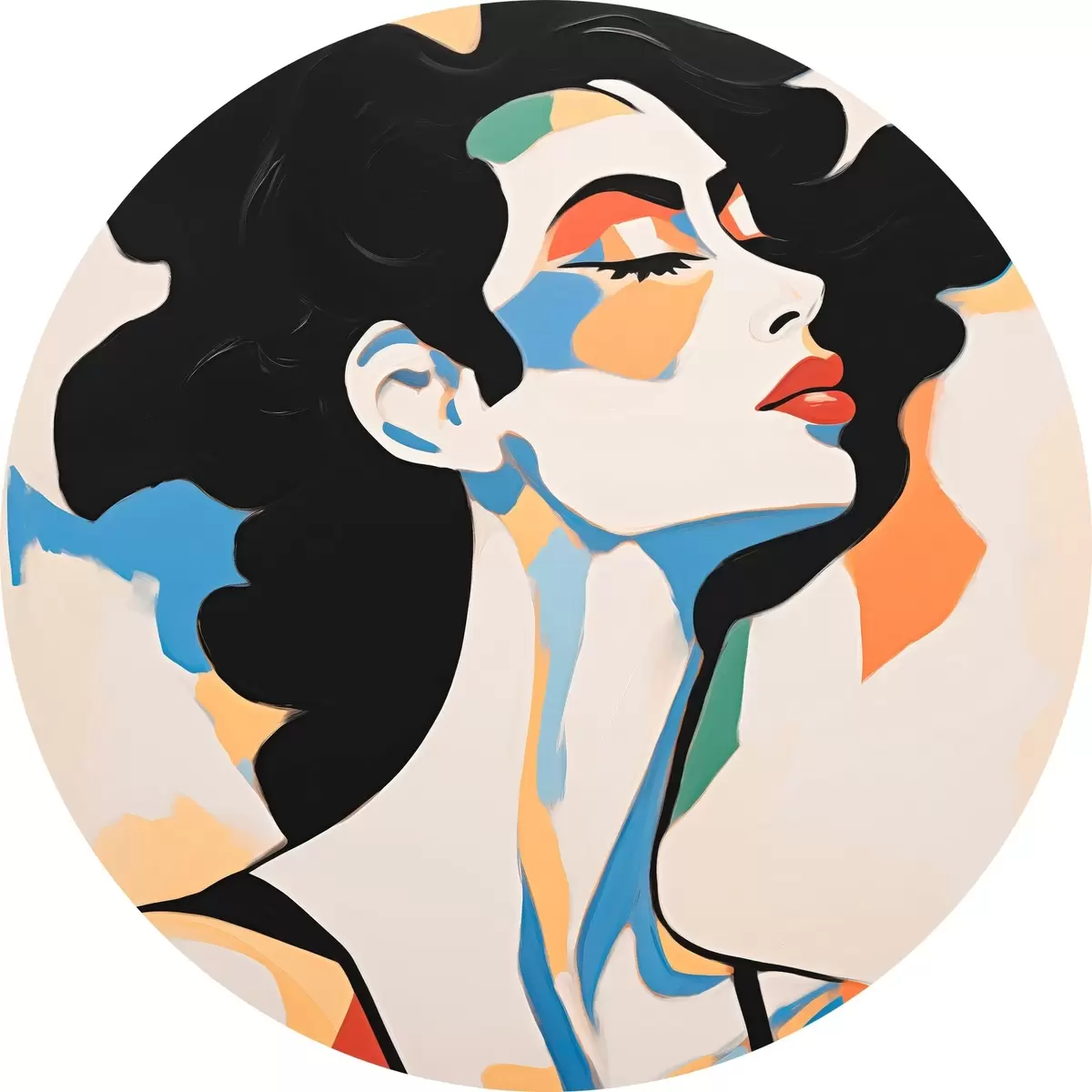 Runde Gemälde Abstraktes Porträt einer Frau mit Nachahmung von Pinselstrichen r45233