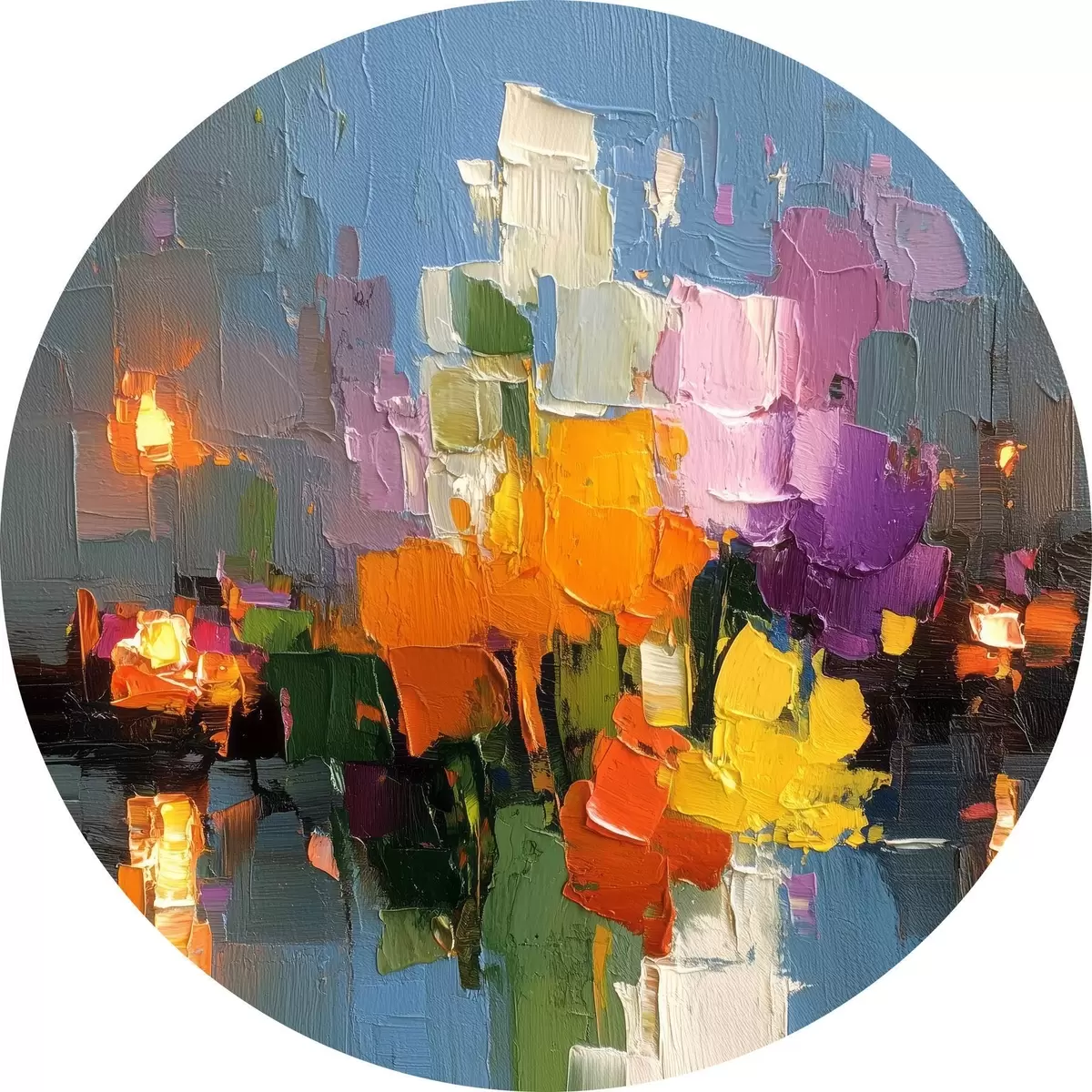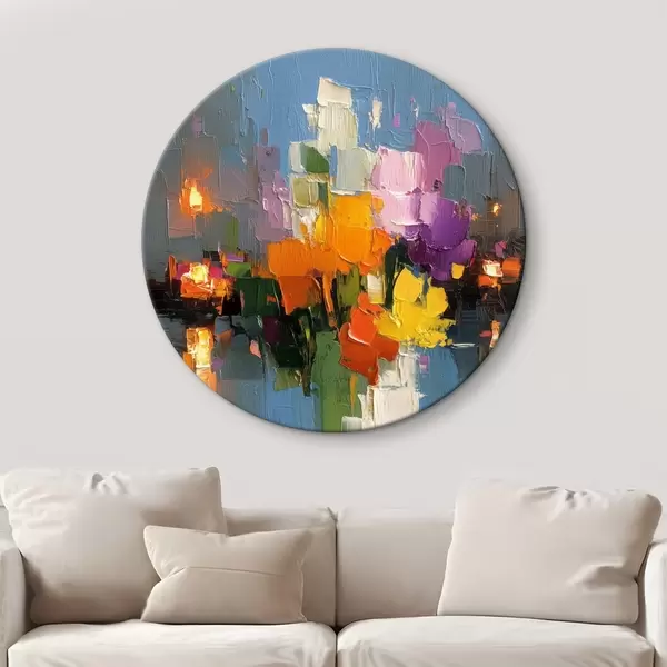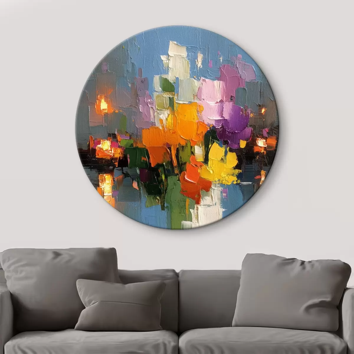 Runde Gemälde Urbane Abstraktion: Reflexion des Lichts im Wasser r45243