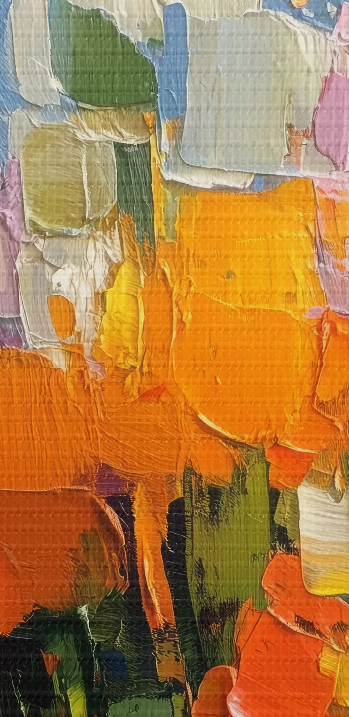 Das Gemälde kann sofort nach Erhalt aufgehängt werden. Das Gemälde wird auf einen 2 cm breiten Holzkeilrahmen aufgespannt.