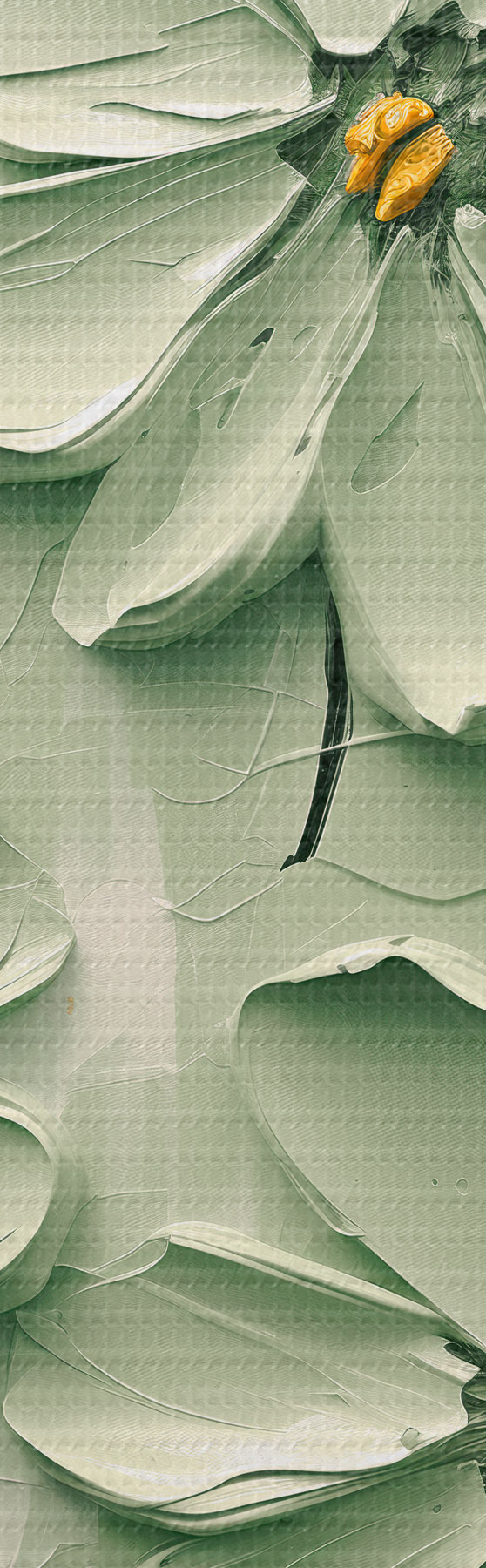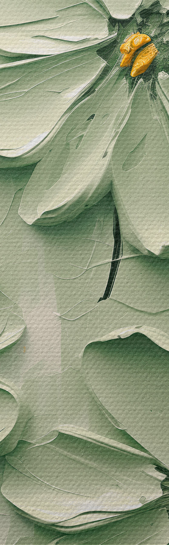 Bild Grüne Blumen mit gelben Zentren gemalt in dicken Pinselstrichen auf einem hellen Hintergrund Nr r45265