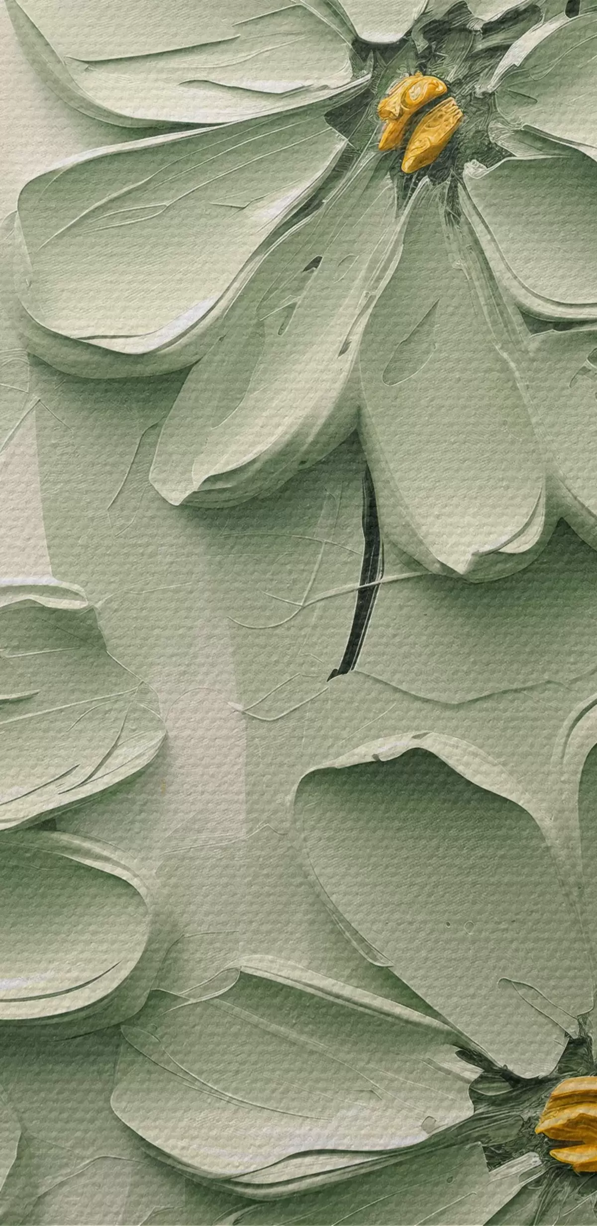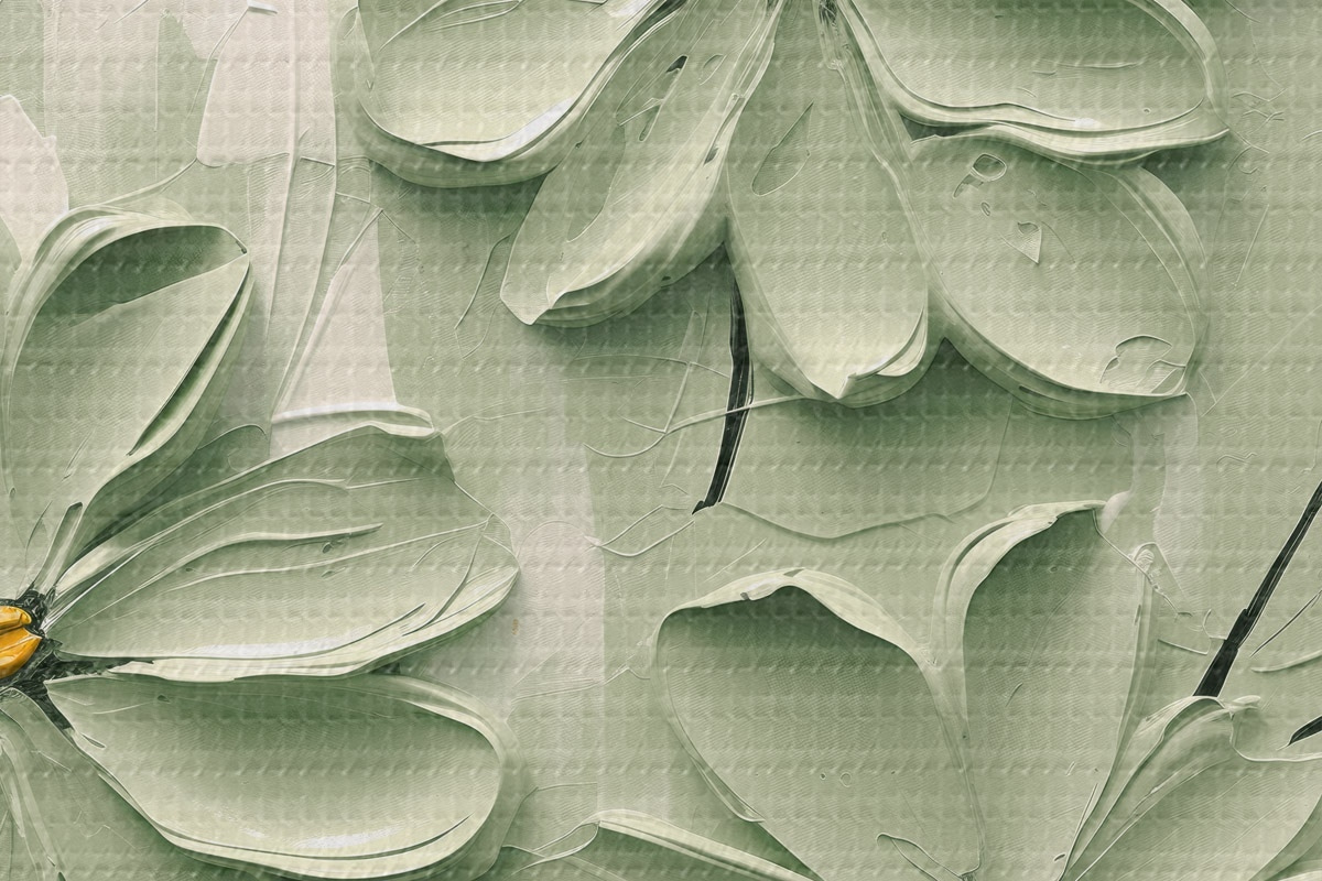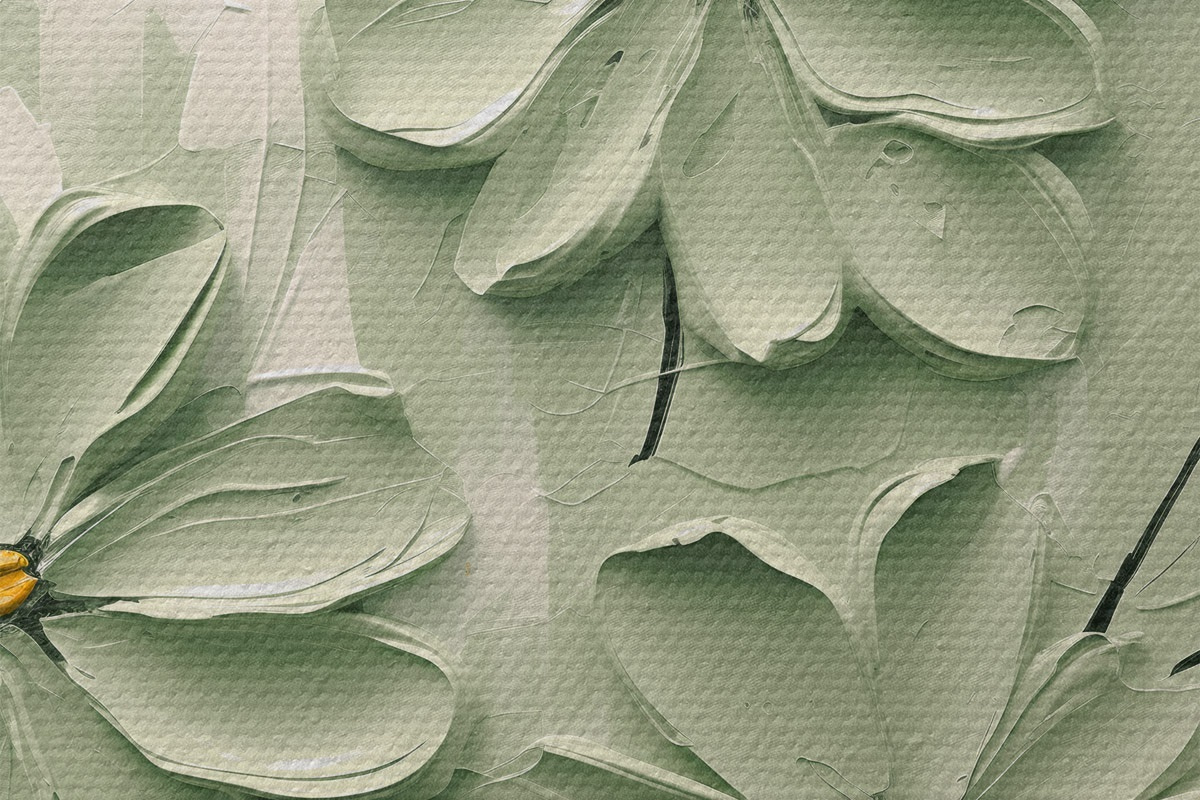 Bild Grüne Blumen mit gelben Zentren gemalt in dicken Pinselstrichen auf einem hellen Hintergrund Nr r45265