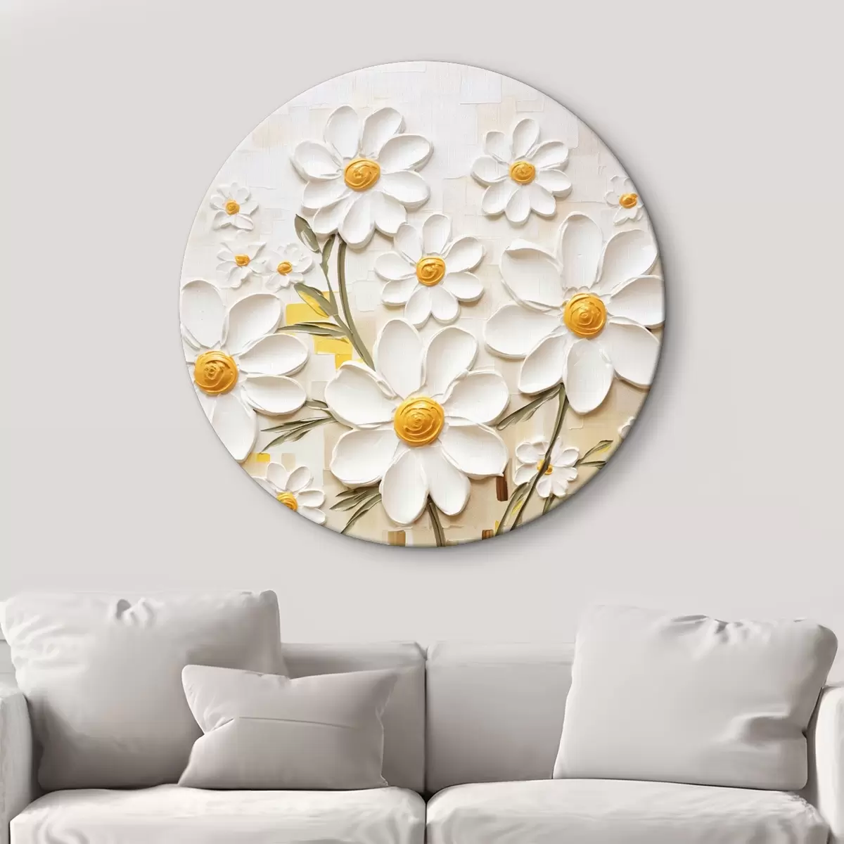 Runde Gemälde Blumenkomposition im volumetrischen Stil mit Akzenten r45267