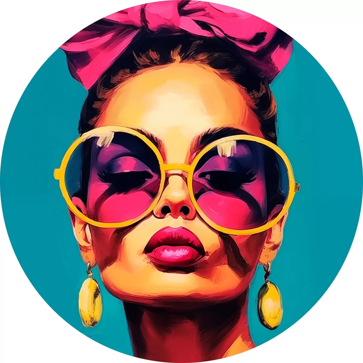 Runde Gemälde Frau mit Sonnenbrille r45309