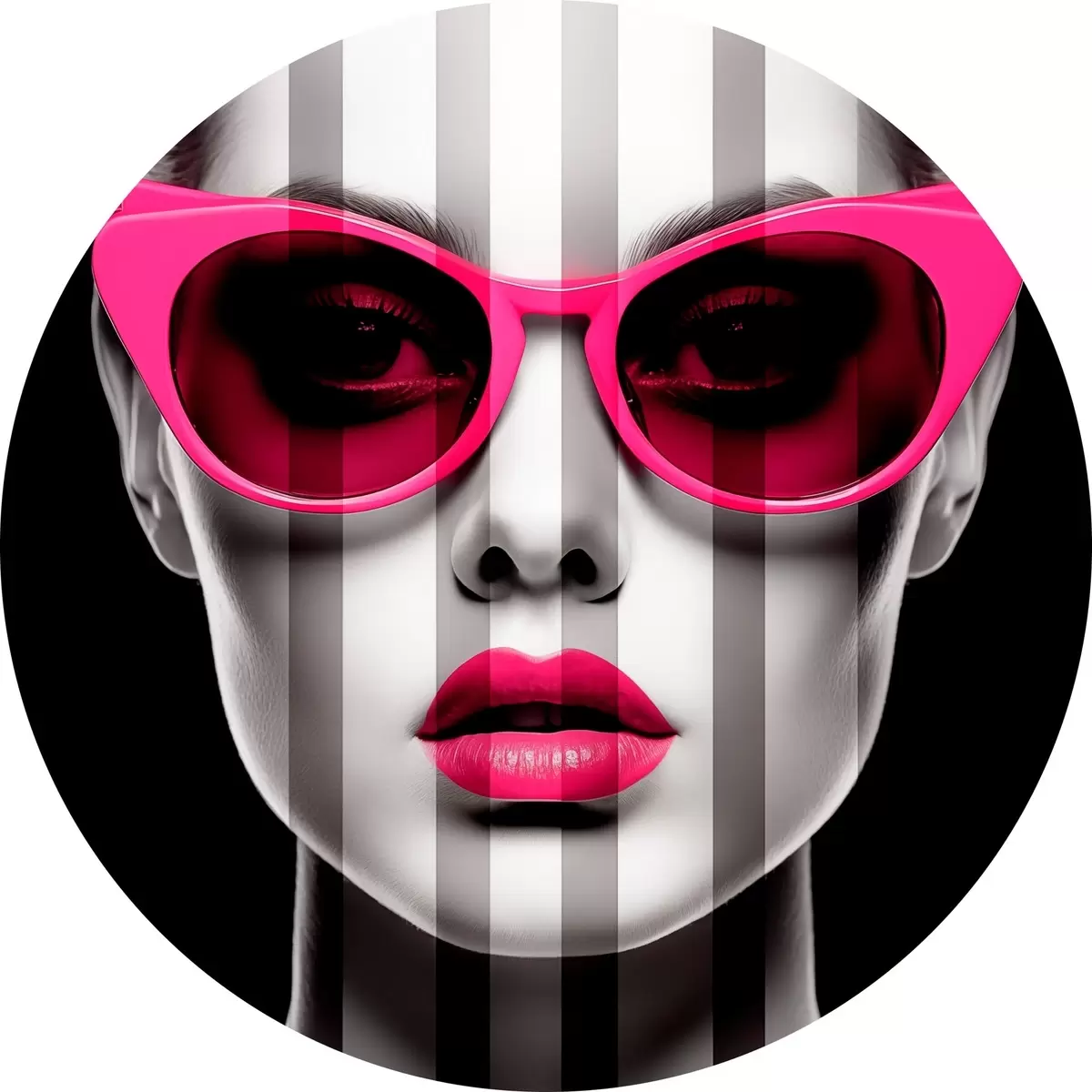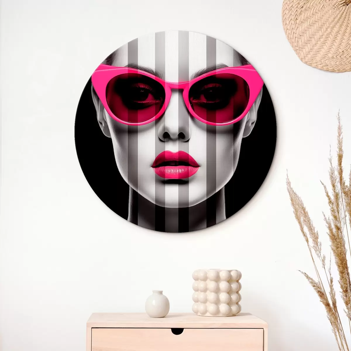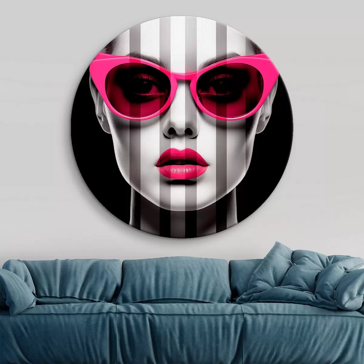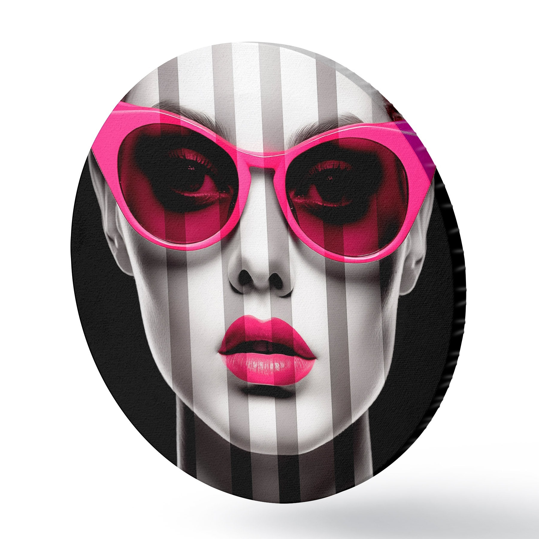 Runde Gemälde Frau mit rosa Brille mit schwarzen und weißen Streifen r45315