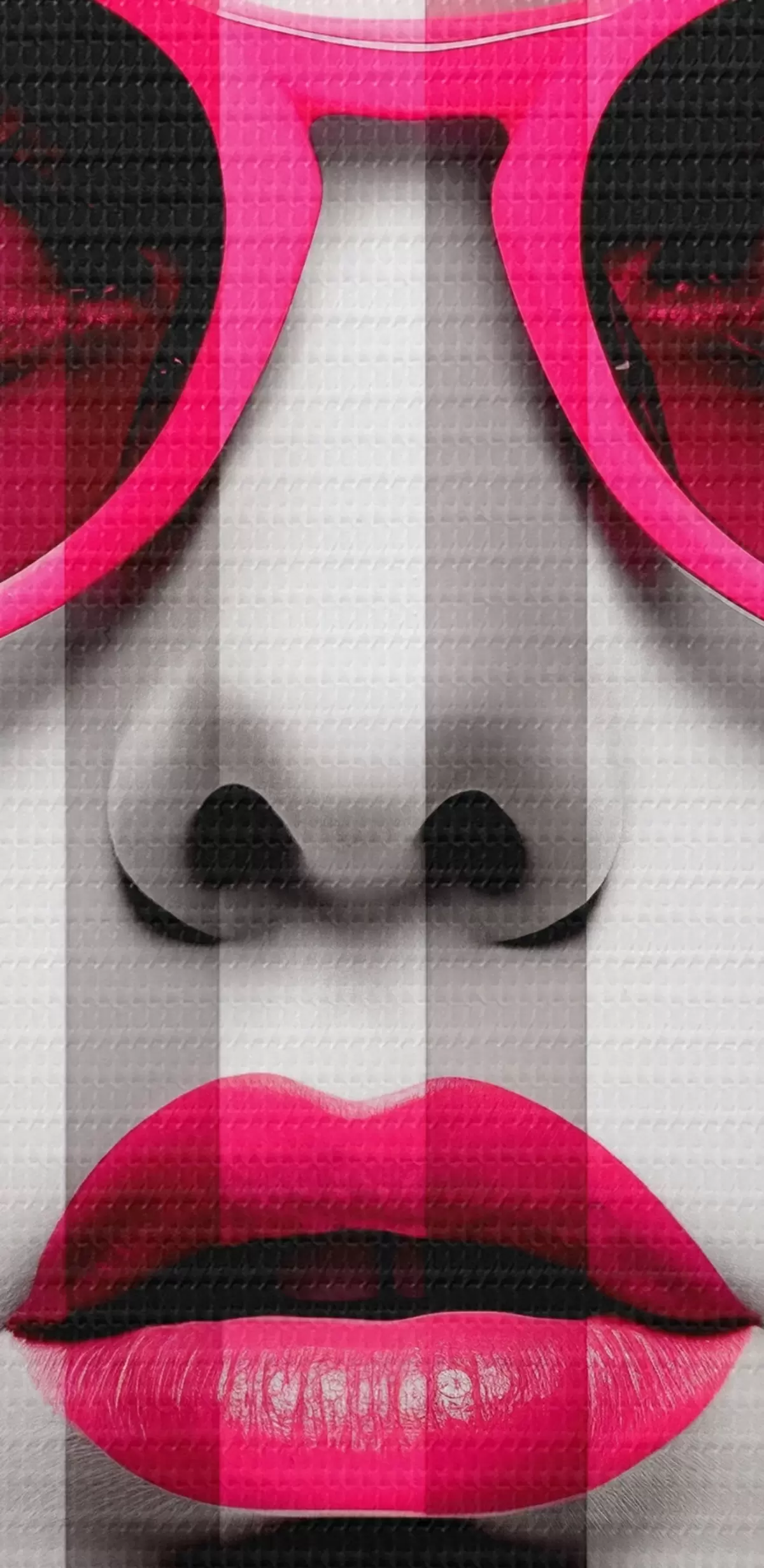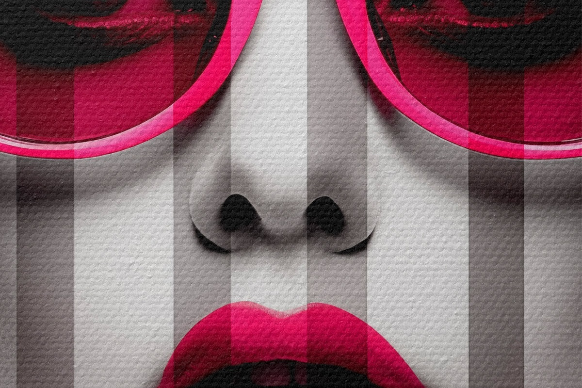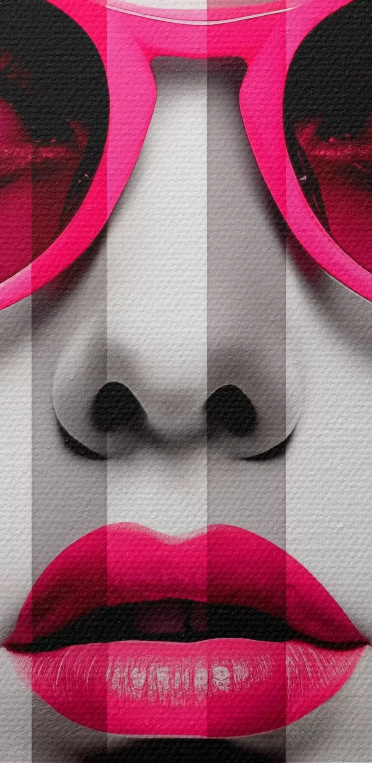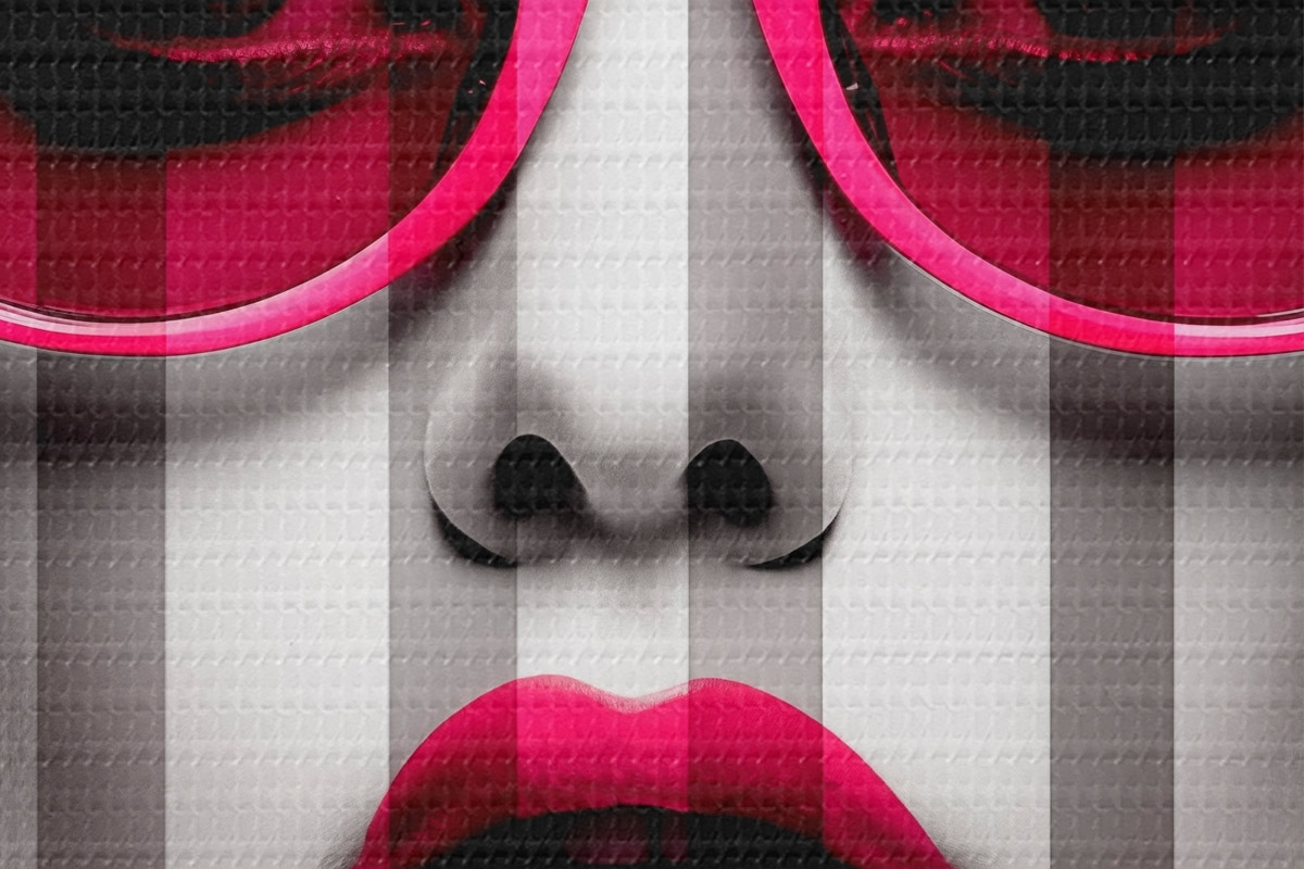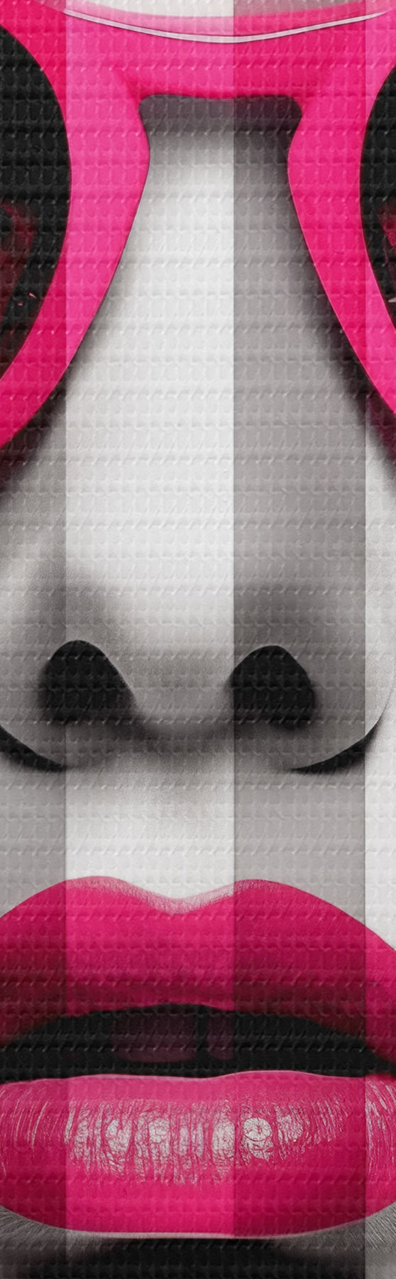 Bild Frau mit rosa Brille mit schwarzen und weißen Streifen Nr r45315