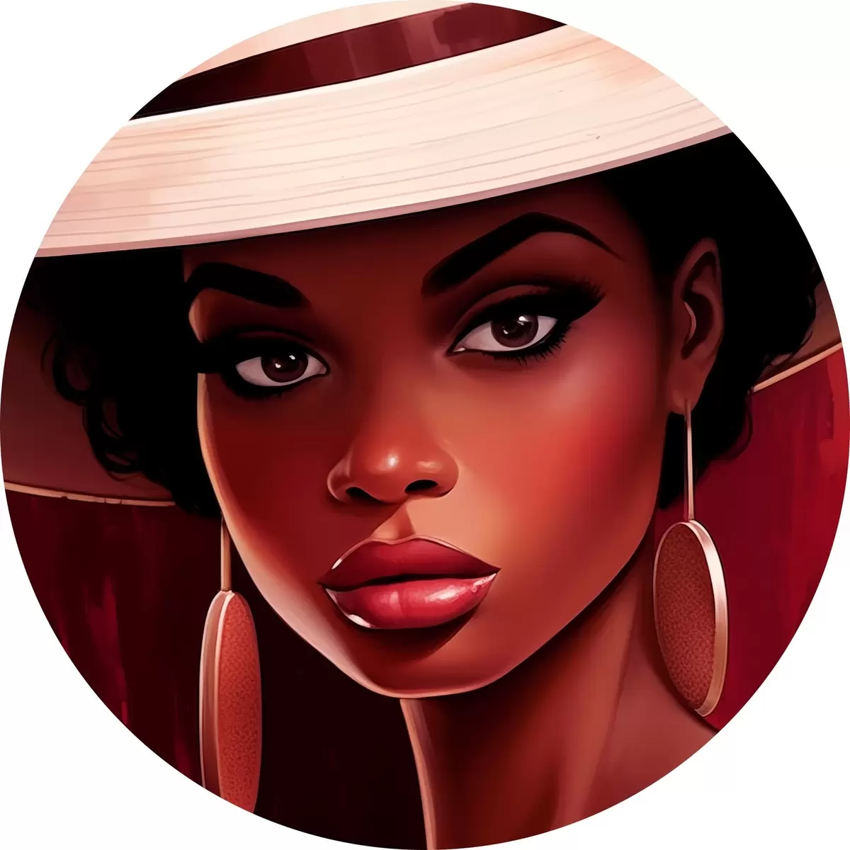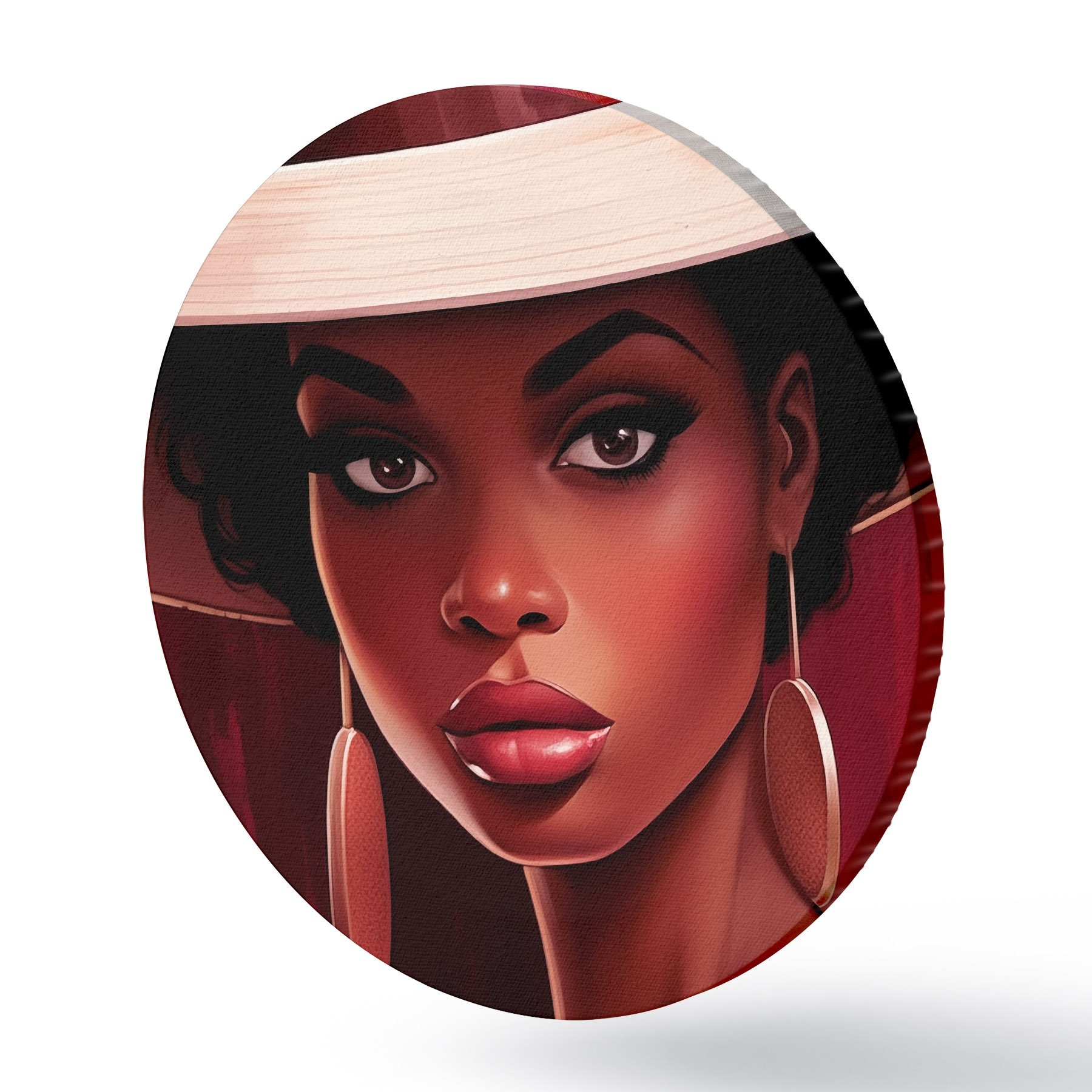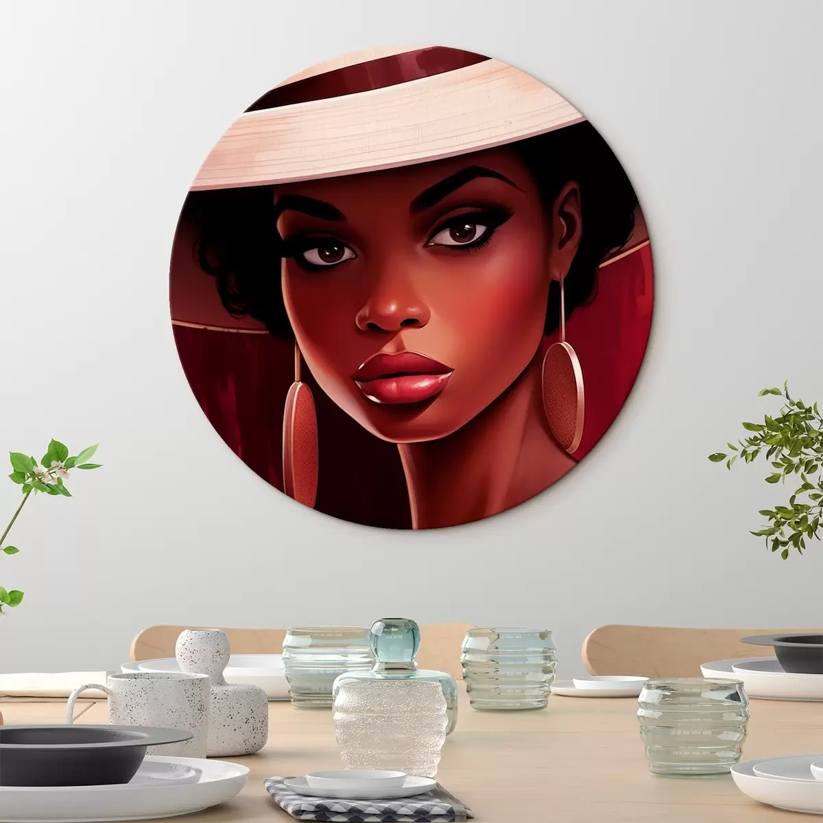 Runde Gemälde Frau mit einem hellen Hut und runden Ohrringen r45323