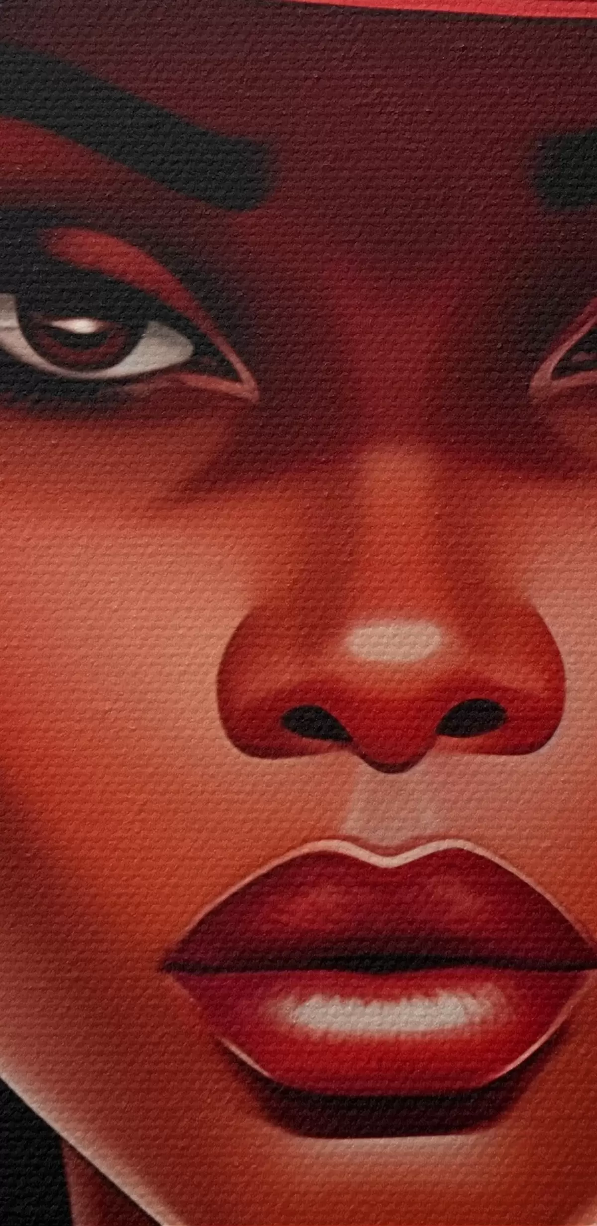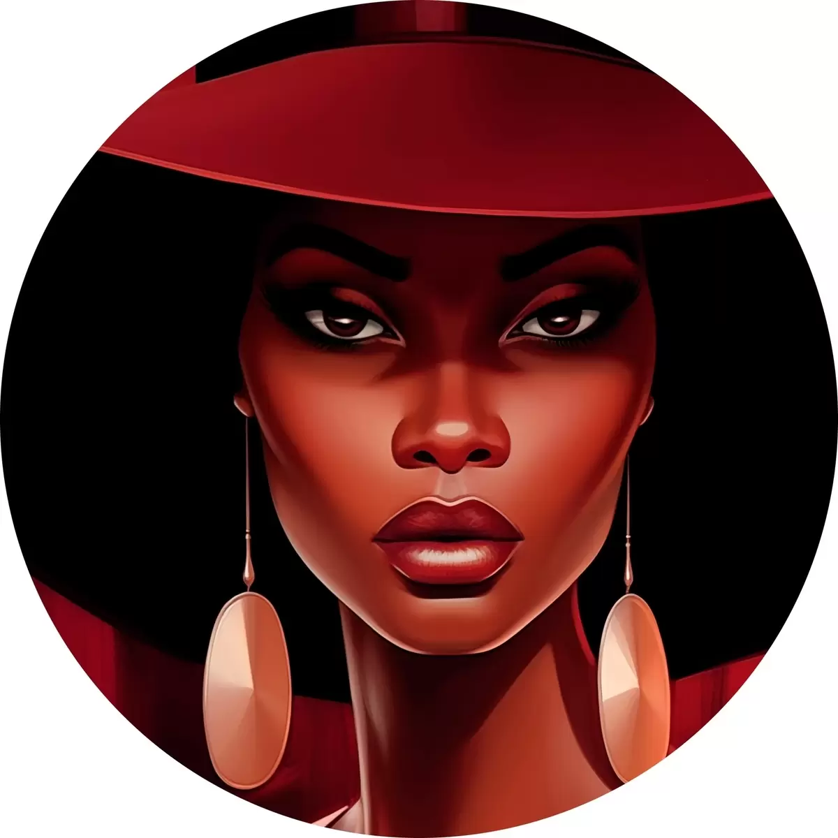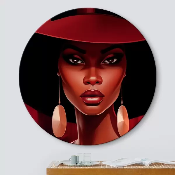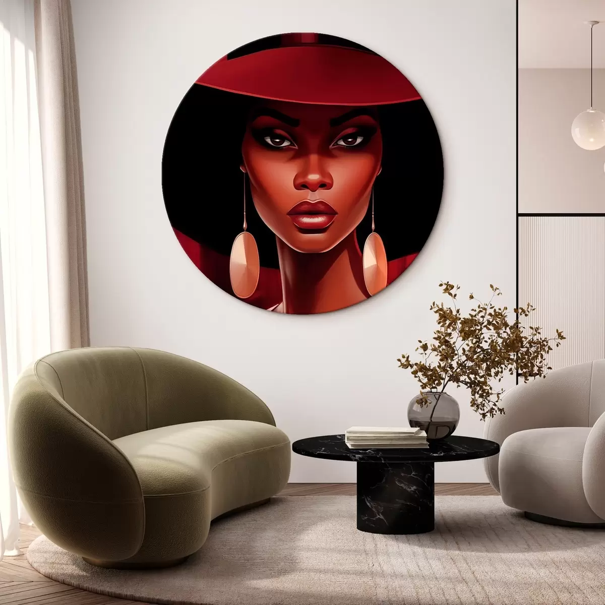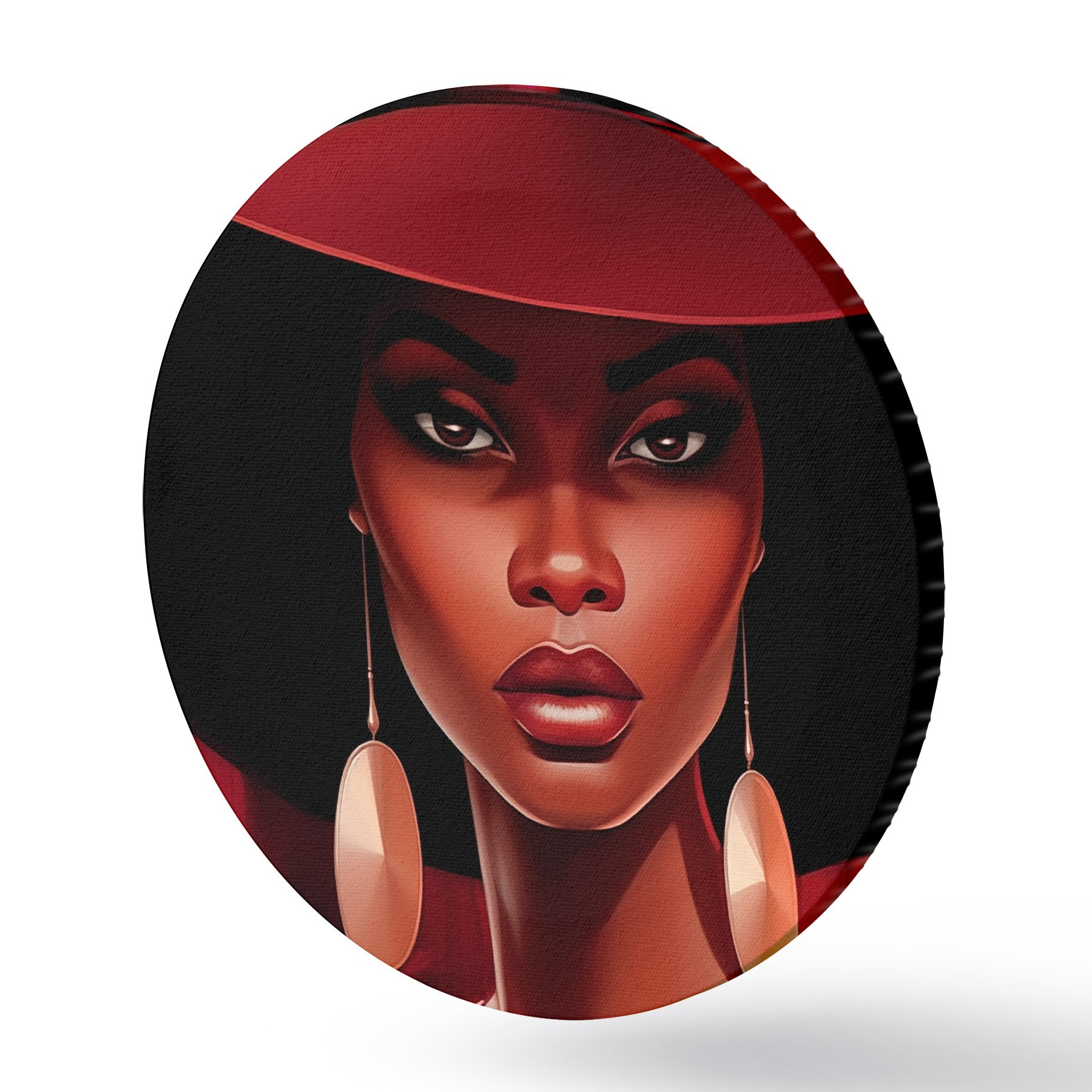 Runde Gemälde Frau mit Hut und runden Ohrringen r45325