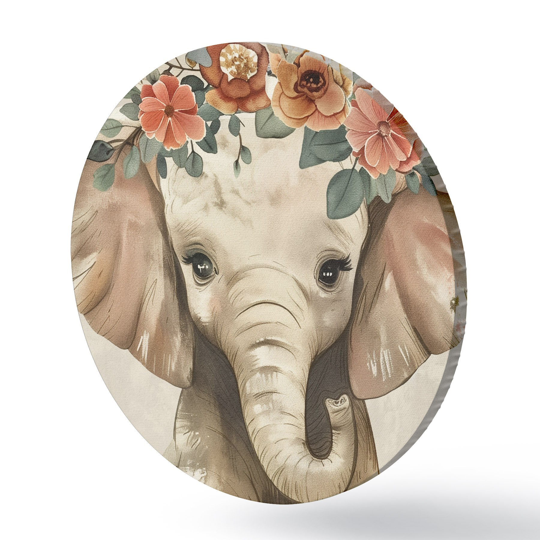 Runde Gemälde Niedlicher Aquarell-Elefant mit Blumen r45330