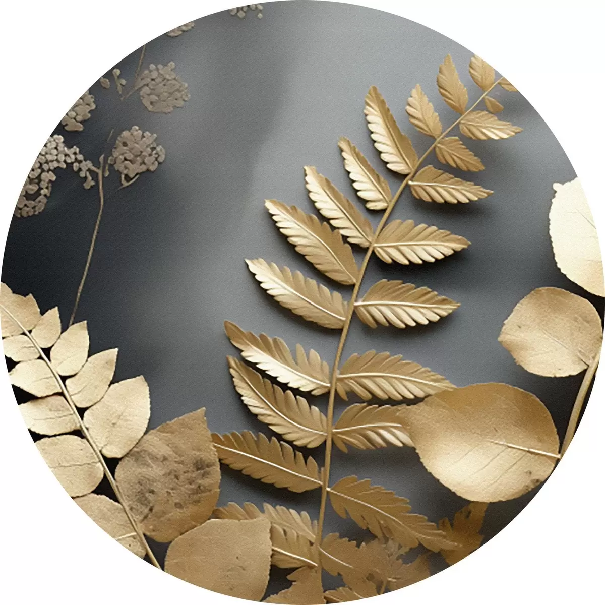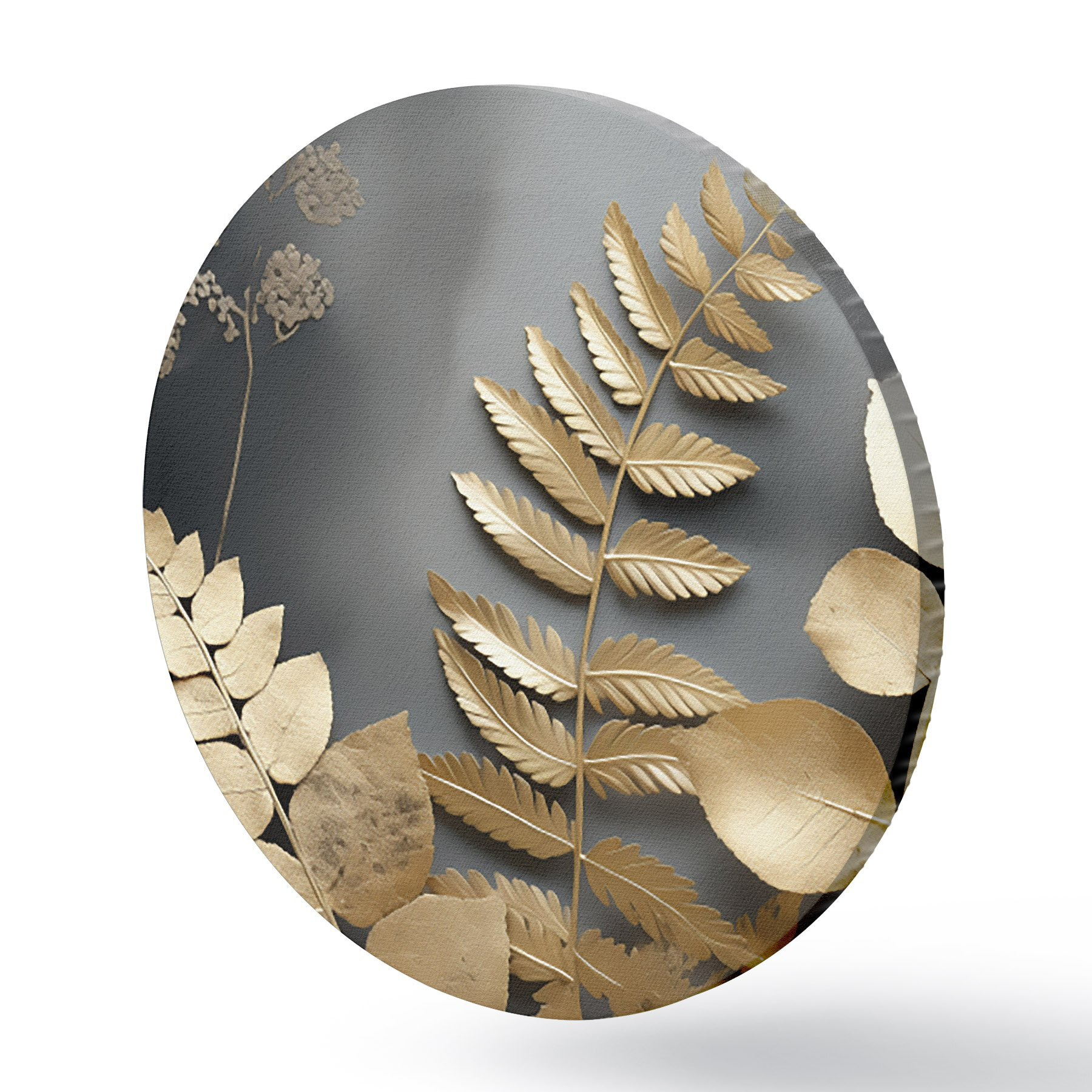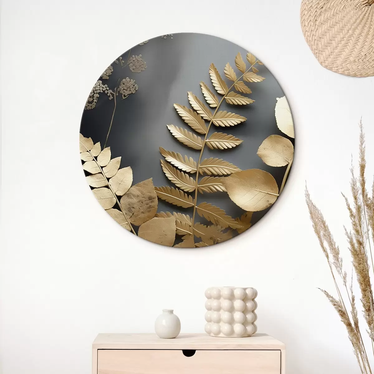 Runde Gemälde Eukalyptuszweige und tropische Blätter auf einem dunklen Hintergrund r45333