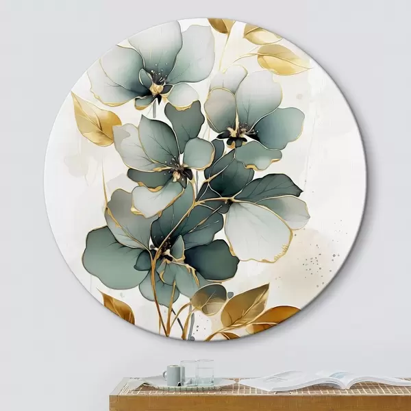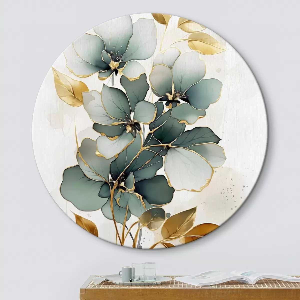 Runde Gemälde Abstrakter Zweig mit Blumen und Blättern r45367