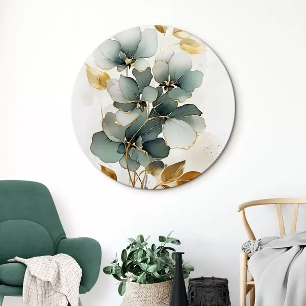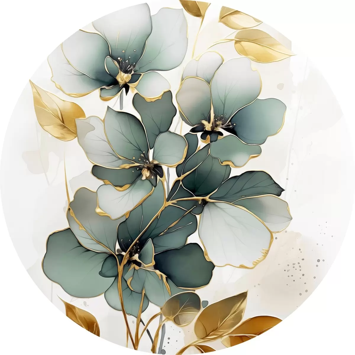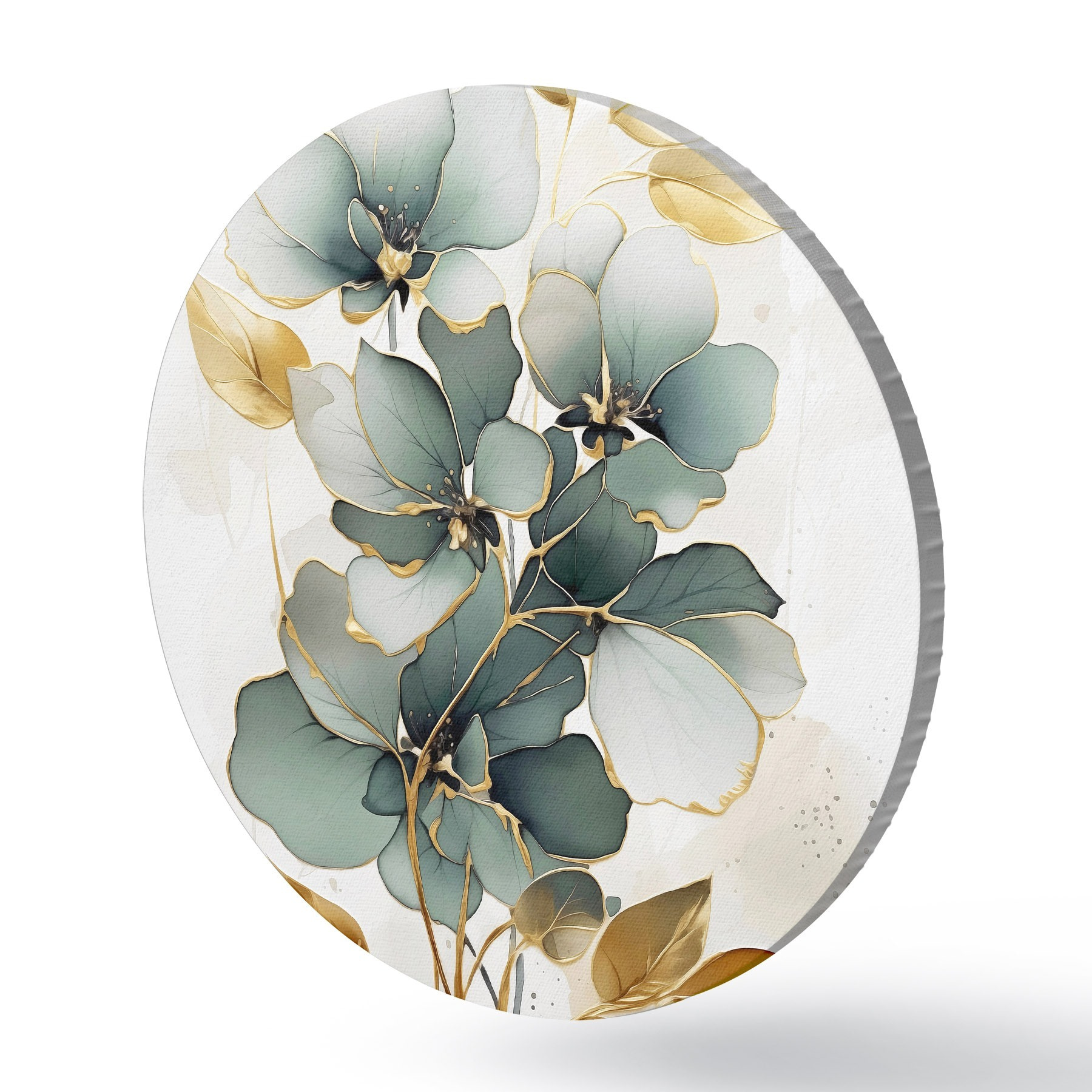 Runde Gemälde Abstrakter Zweig mit Blumen und Blättern r45367