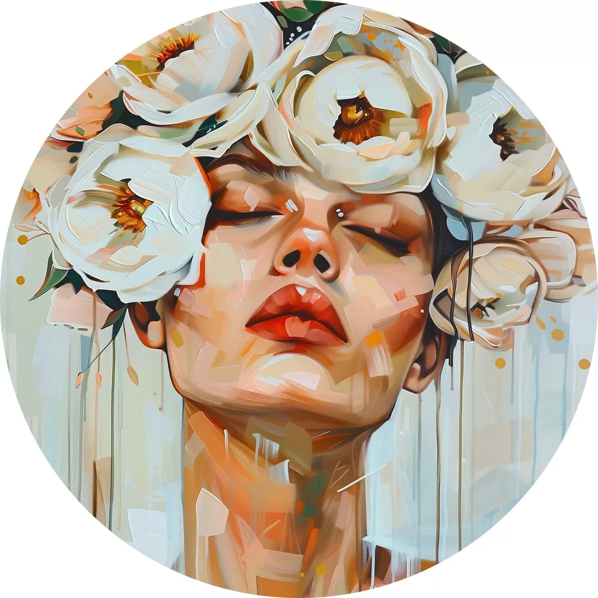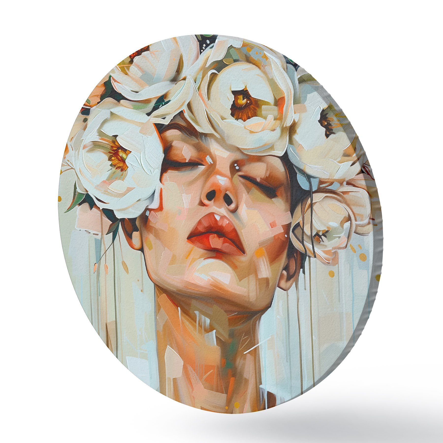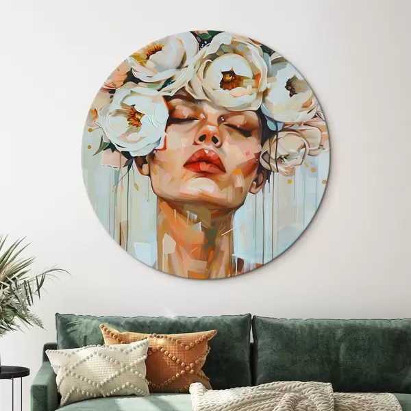 Runde Gemälde Porträt einer Frau mit Blumen r45370