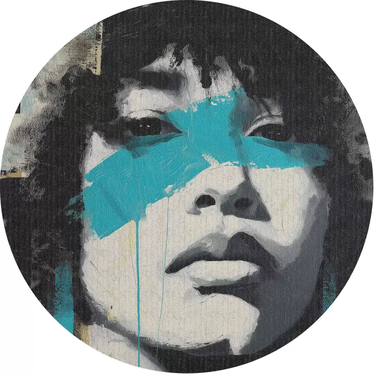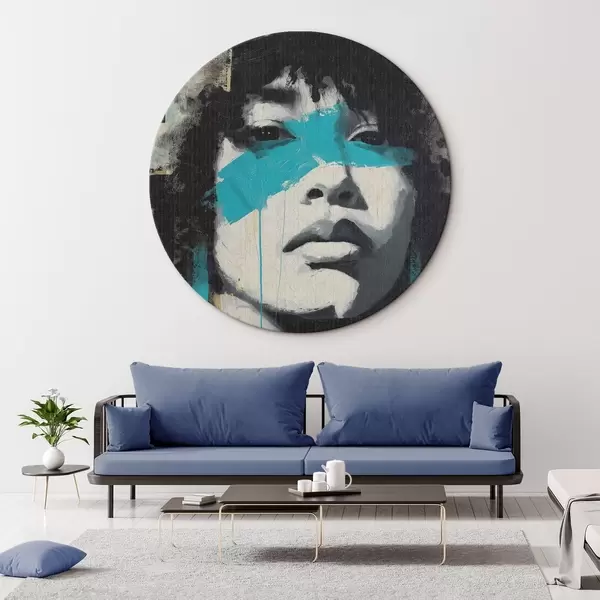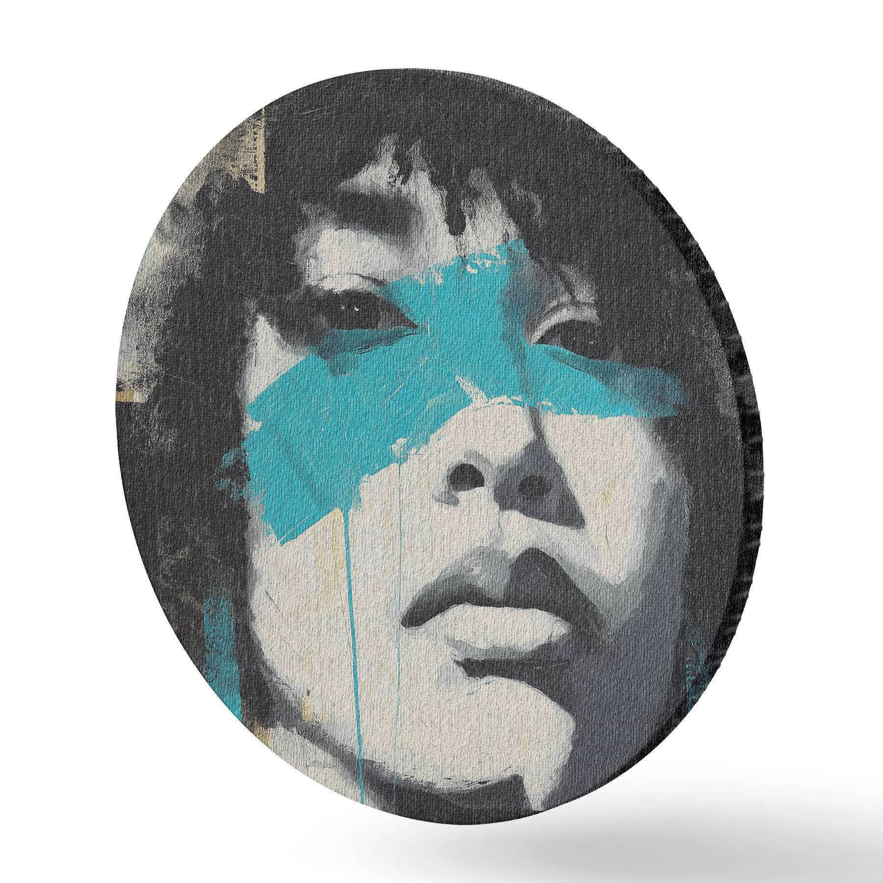 Runde Gemälde Mixed Media Portrait mit Fragmenten von Farbstrichen und Texturen r45417