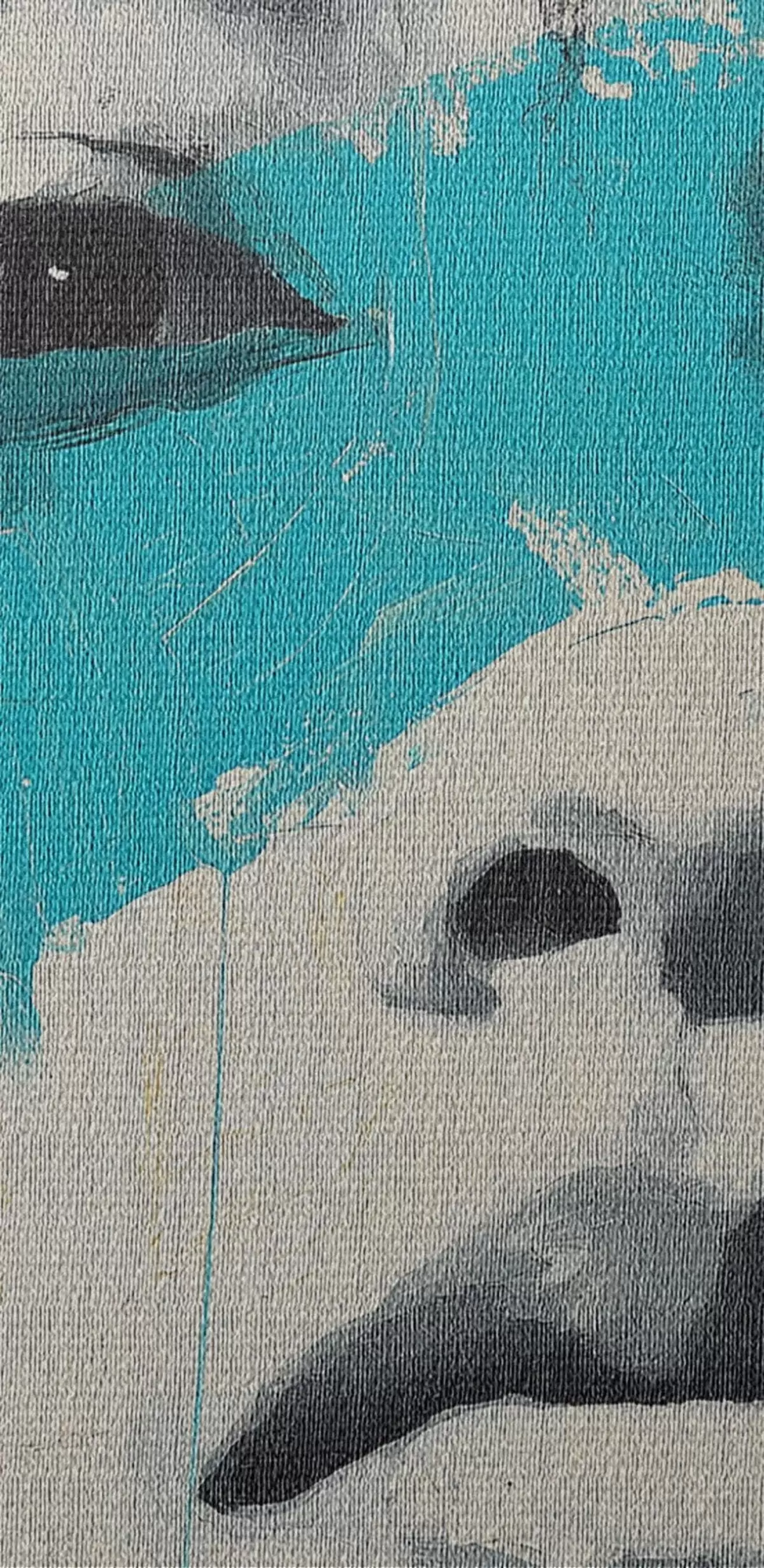 Bild Mixed Media Portrait mit Fragmenten von Farbstrichen und Texturen Nr r45417