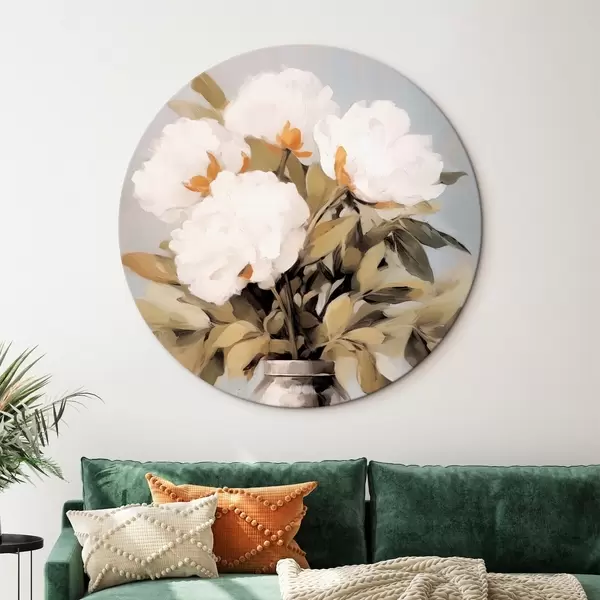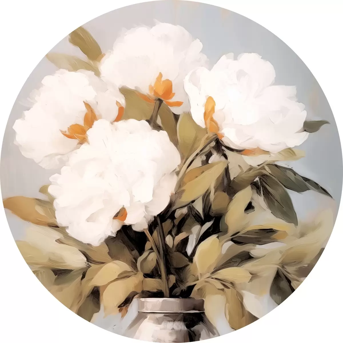 Runde Gemälde Blumenstrauß aus Pfingstrosen in einer Vase r45422