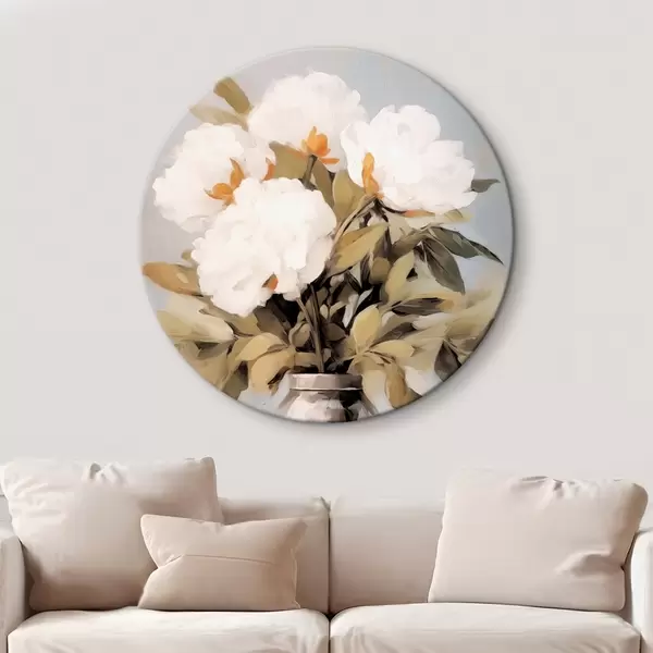 Runde Gemälde Blumenstrauß aus Pfingstrosen in einer Vase r45422