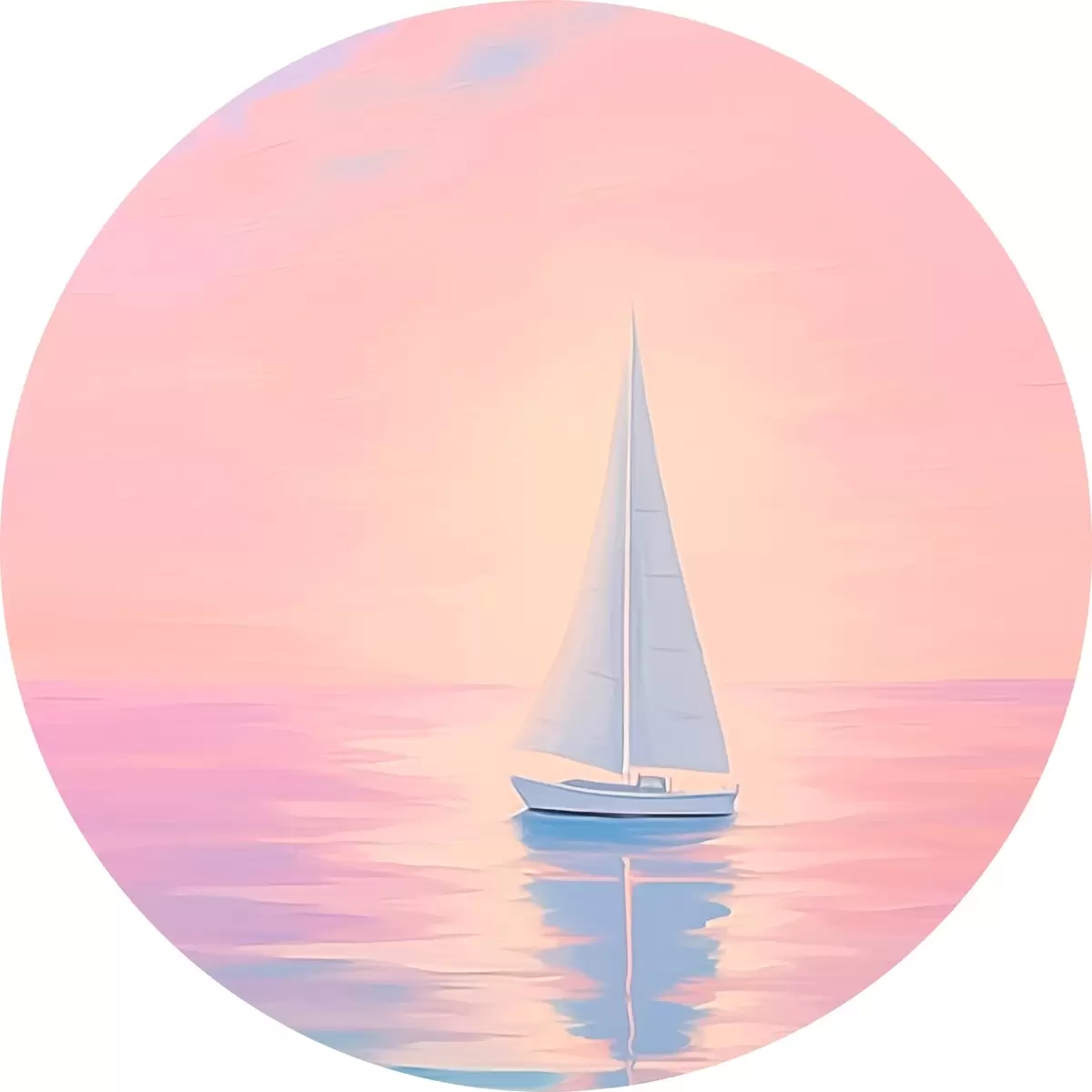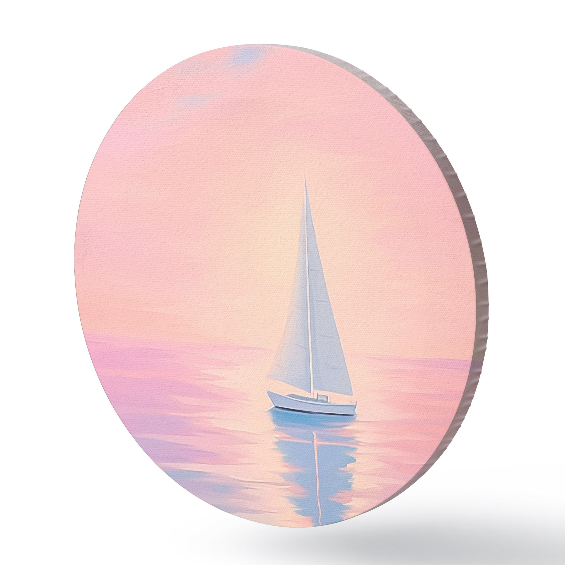 Runde Gemälde Segelboot auf See bei Sonnenuntergang r45428