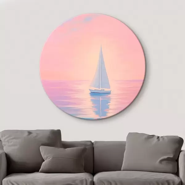 Runde Gemälde Segelboot auf See bei Sonnenuntergang r45428