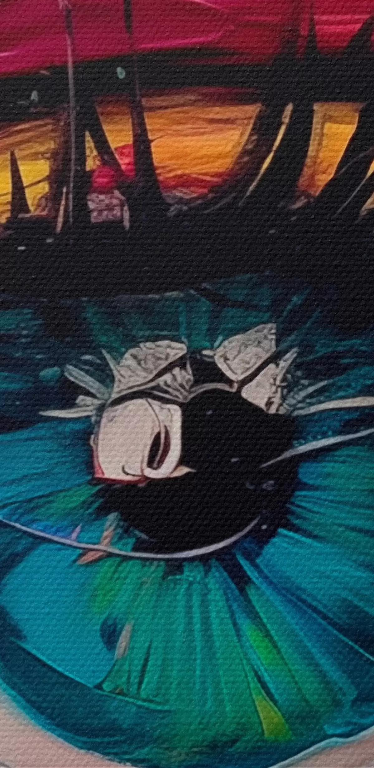 Um die Leinwand auf Keilrahmen zu spannen, ohne das Bild zu beschädigen, verwenden wir ein gespiegeltes Bild.