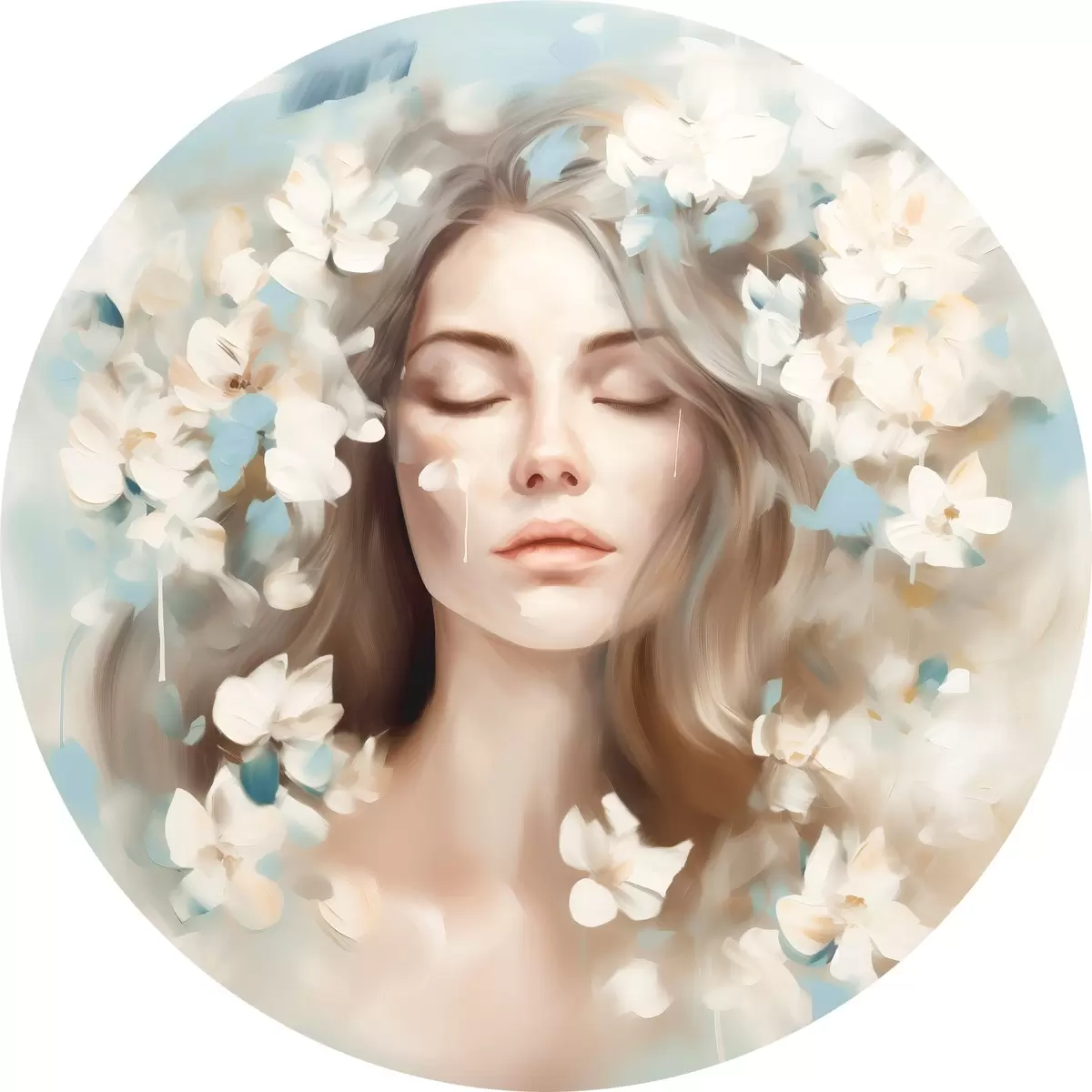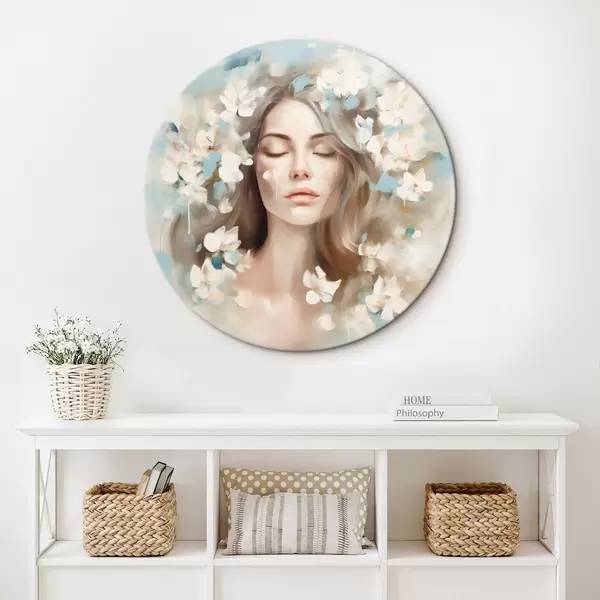 Runde Gemälde Abstraktes Porträt einer Frau mit Blumen in Form von Pinselstrichen r45450