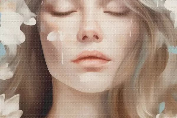 Bild Abstraktes Porträt einer Frau mit Blumen in Form von Pinselstrichen Nr r45450