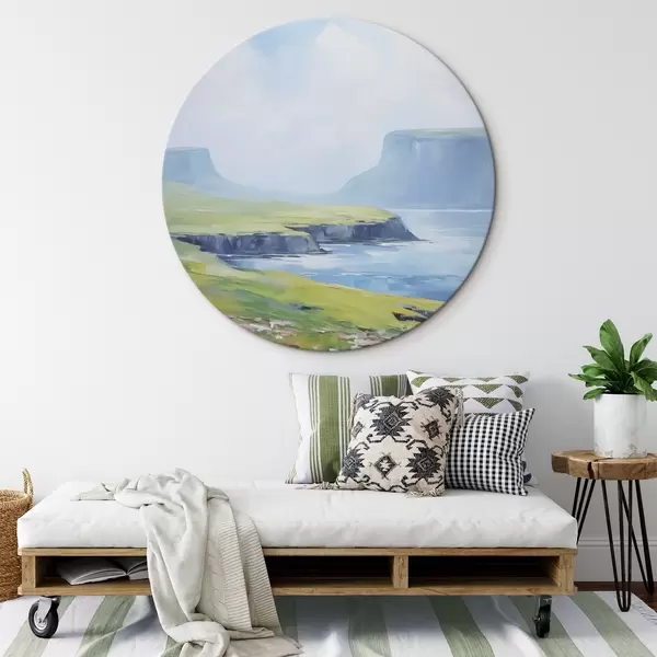 Runde Gemälde Meeresküste mit Fjorden im Hintergrund r45460