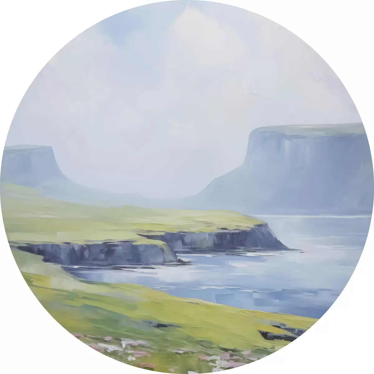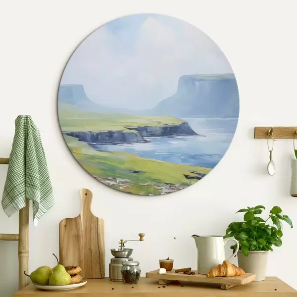 Runde Gemälde Meeresküste mit Fjorden im Hintergrund r45460